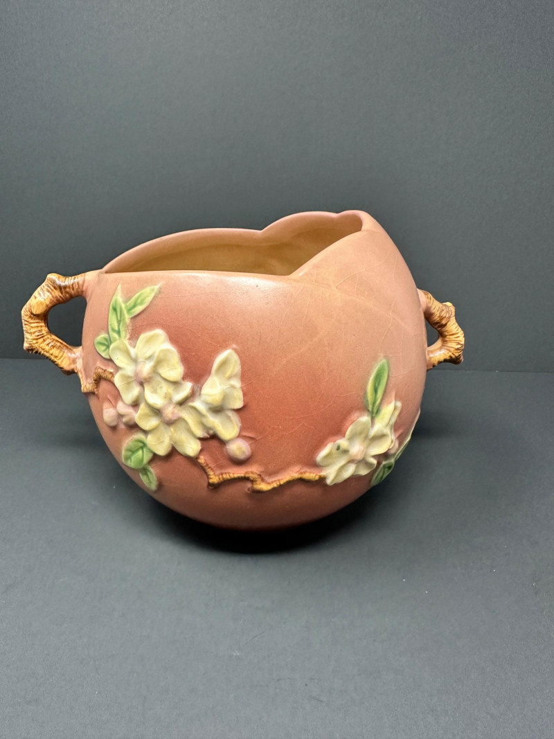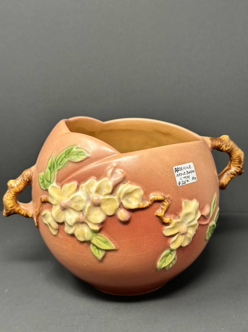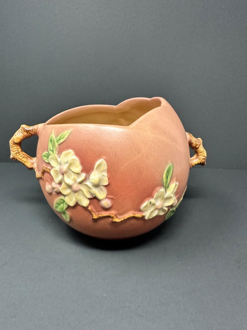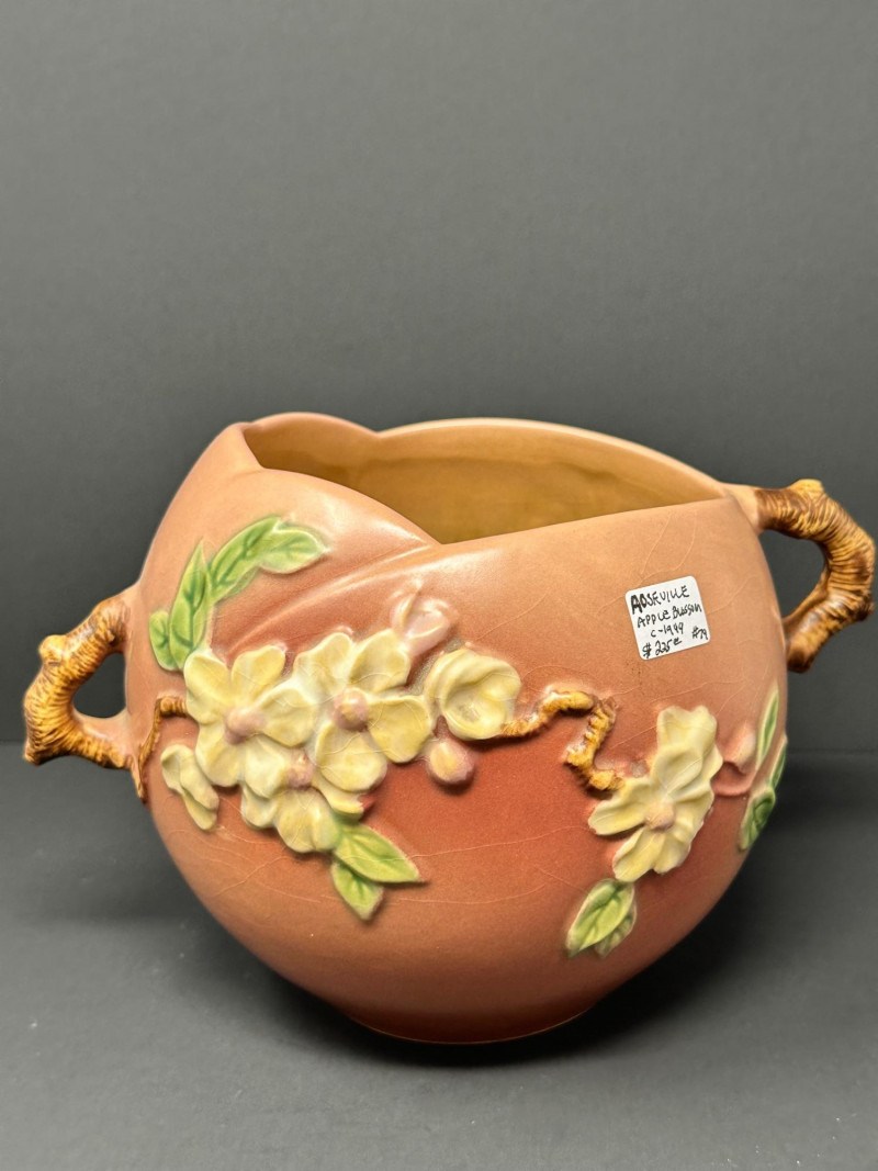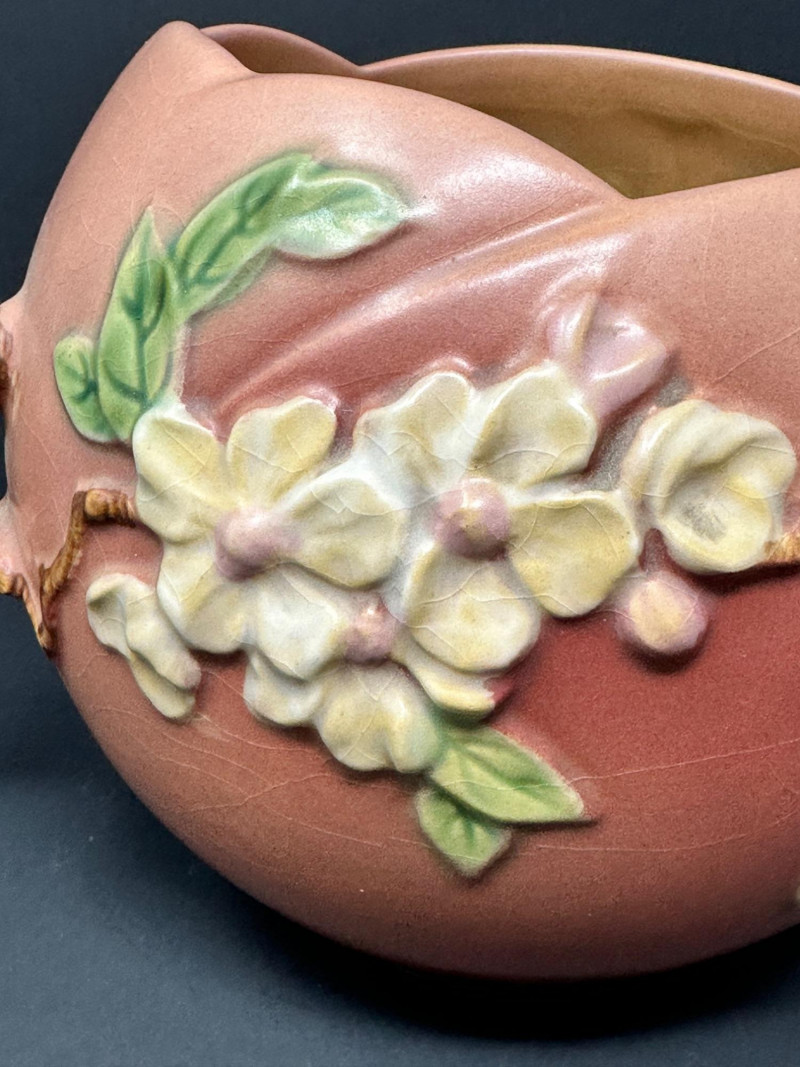 Lot # 50 - Roseville Pottery Apple Blossom Vase – Circa 1949, Double-Handled