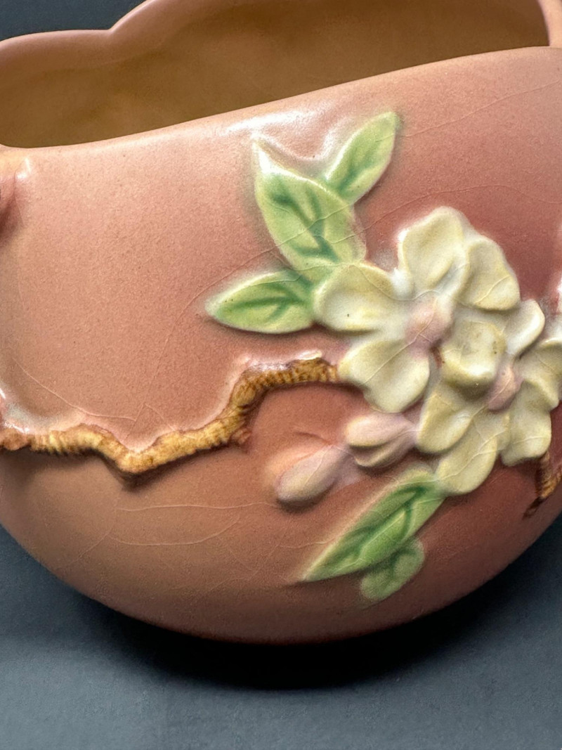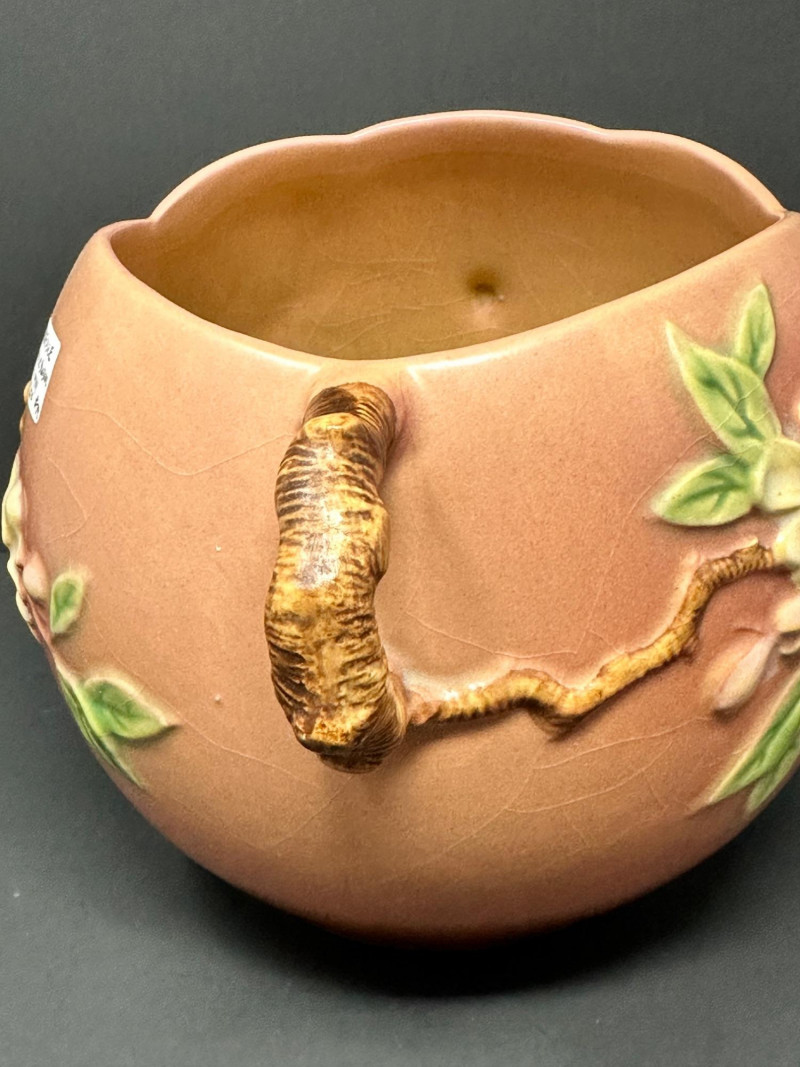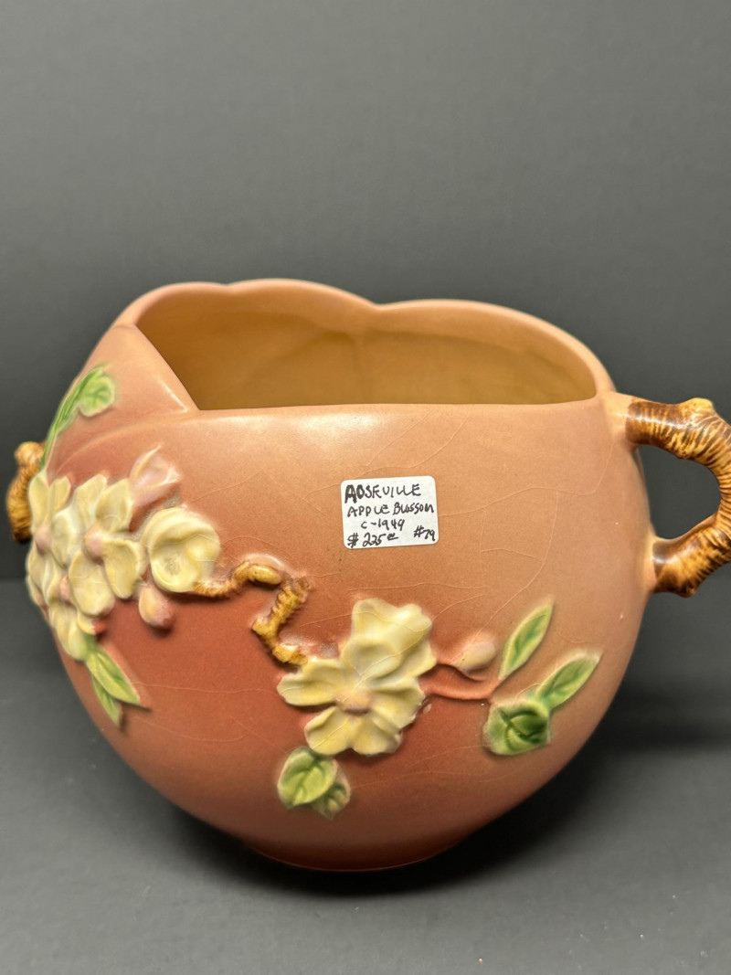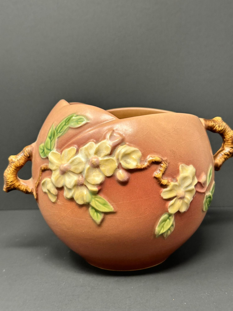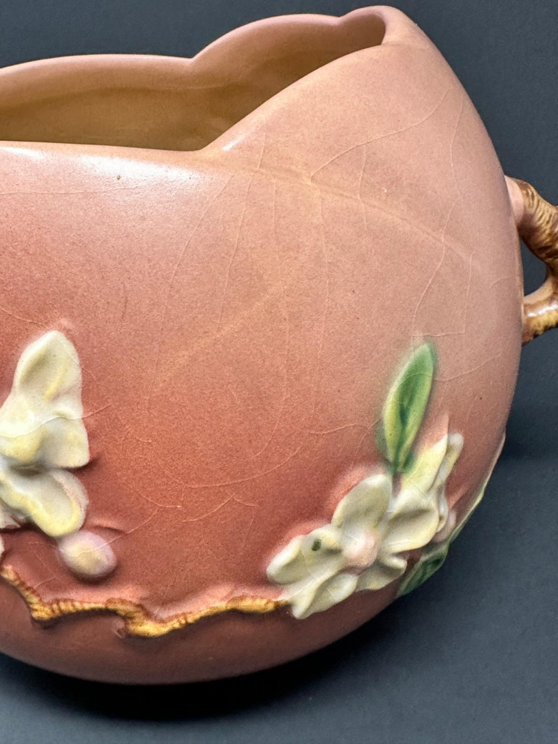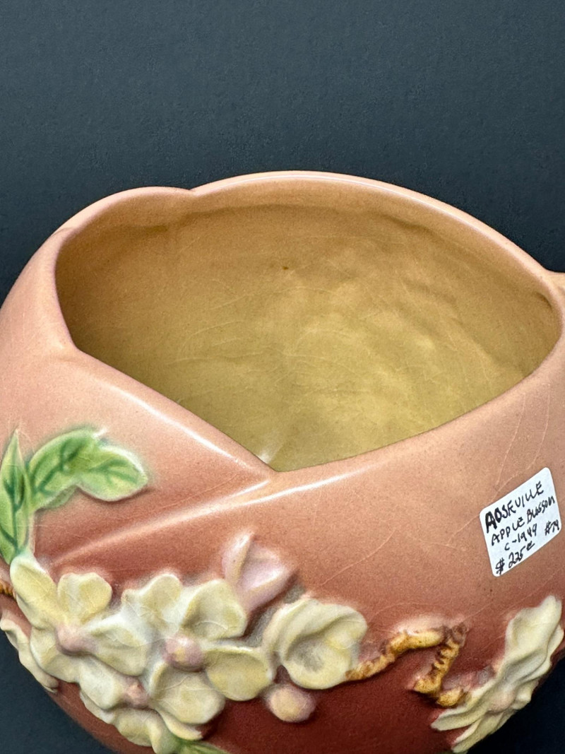 Lot # 50 - Roseville Pottery Apple Blossom Vase – Circa 1949, Double-Handled