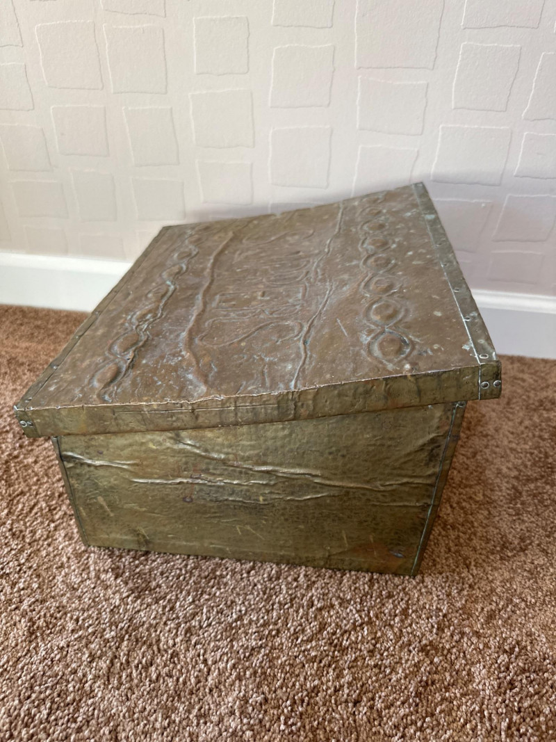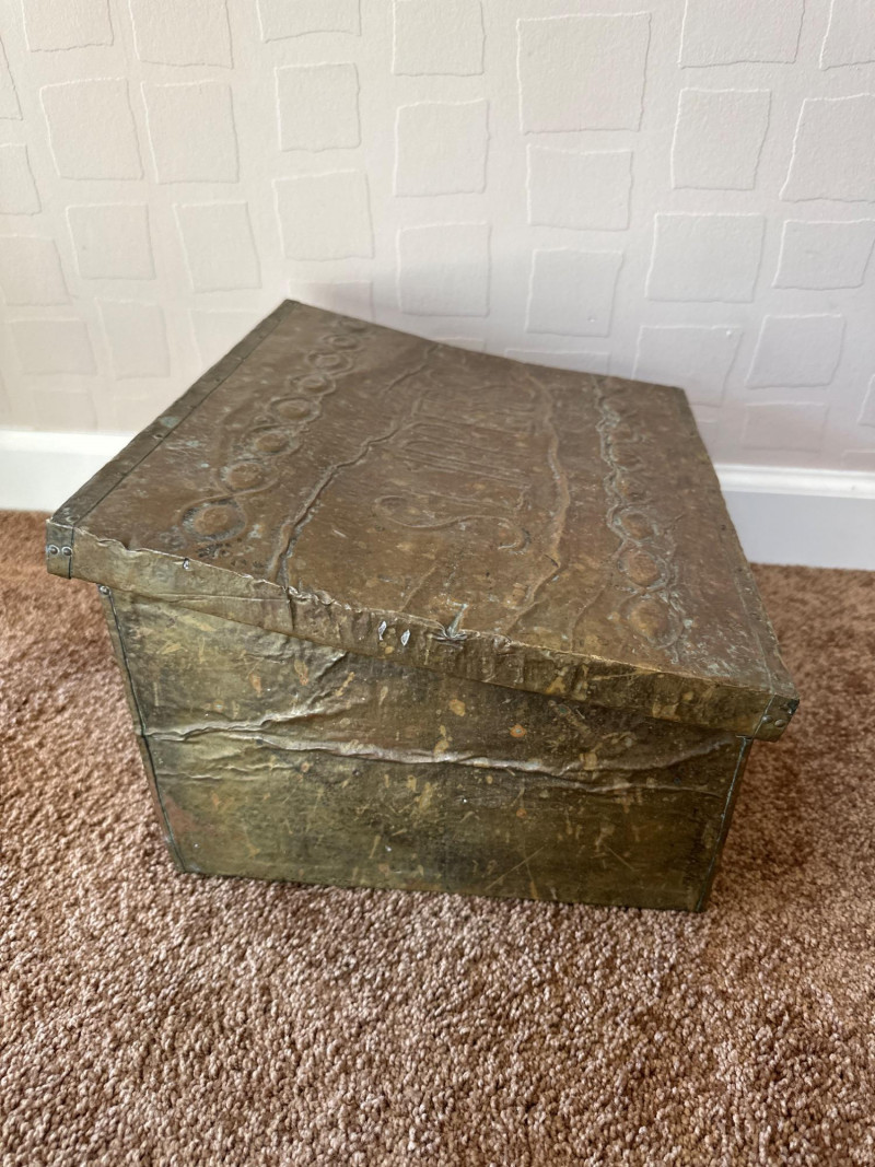 Lot # 56 - Antique Embossed Metal Slipper Box – Early 20th Century