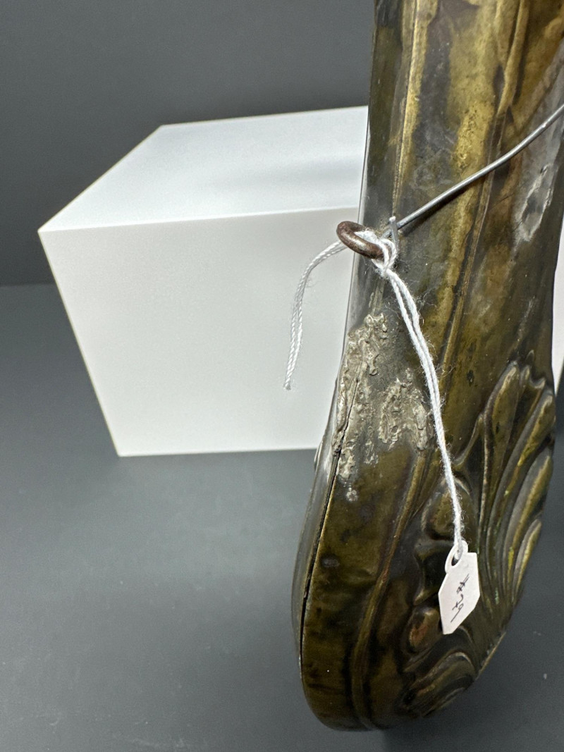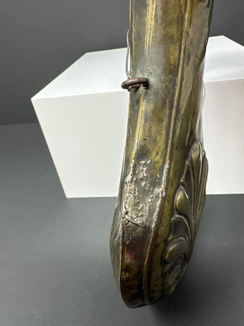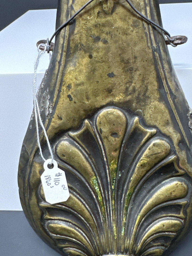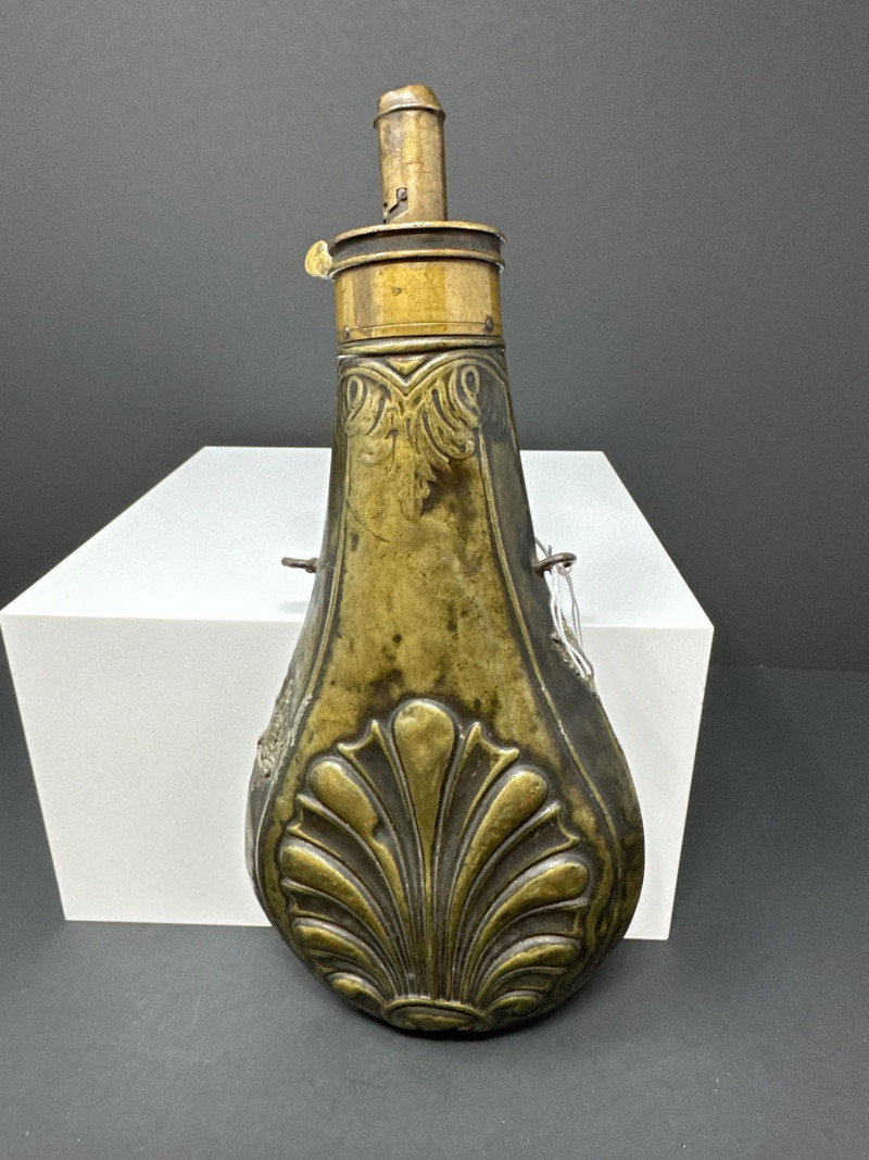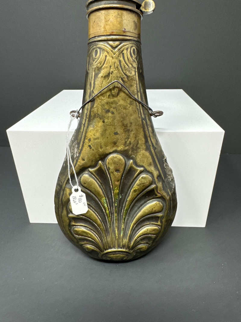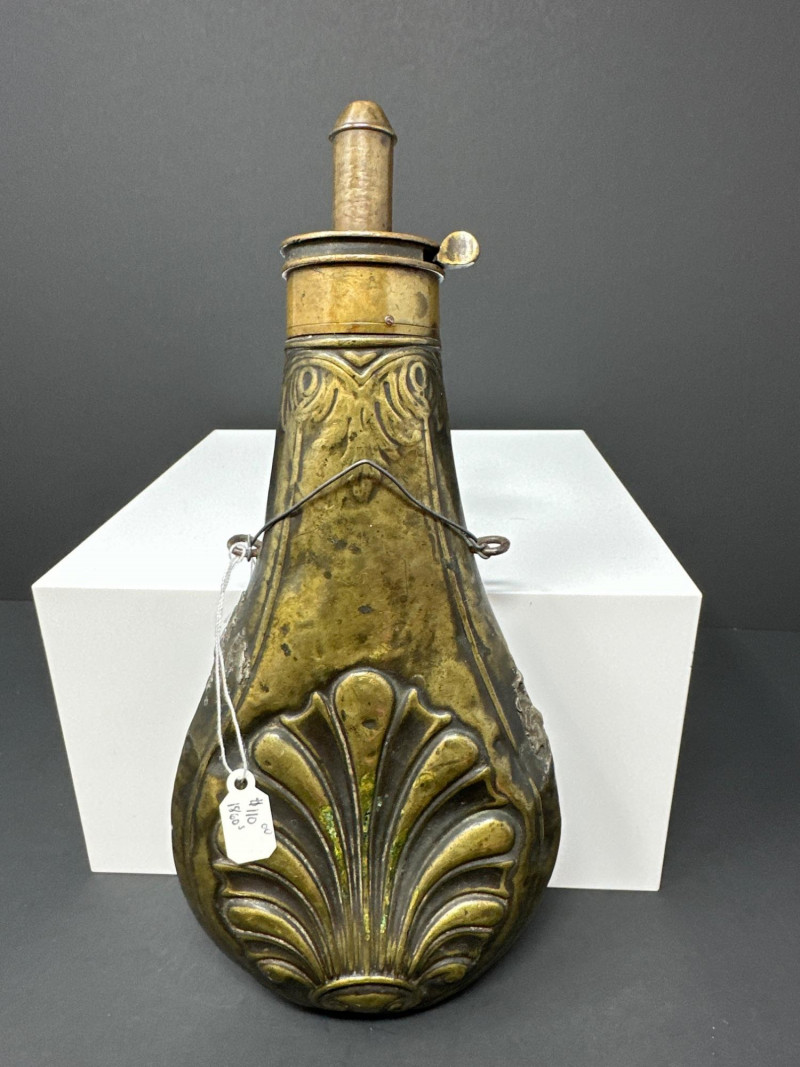 Lot # 63 - 1860s Embossed Brass Powder Flask – Shell Motif