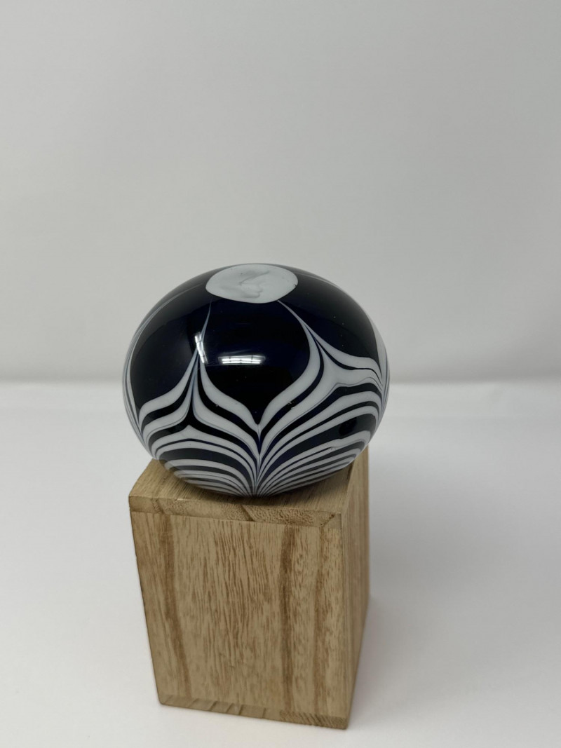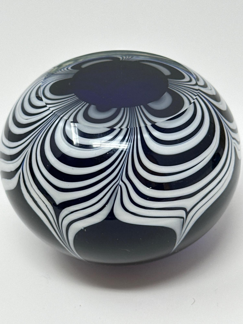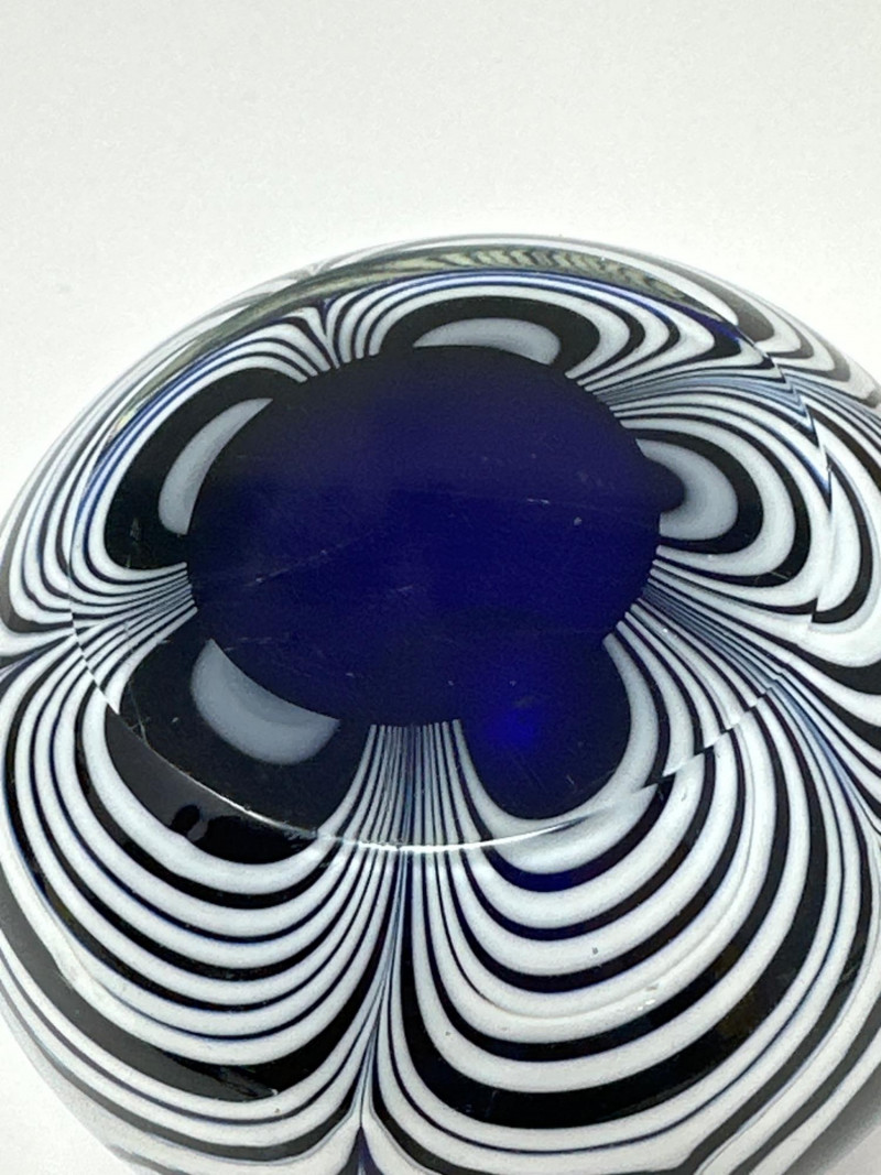 Lot # 67 - Blue and White Pulled Ribbon Glass Paperweight