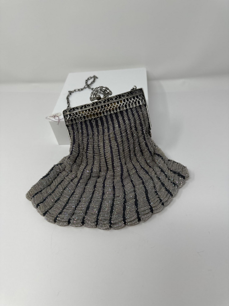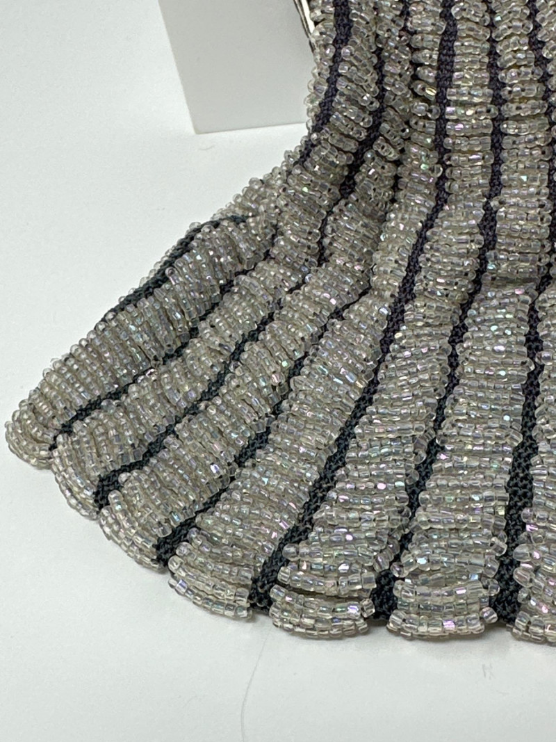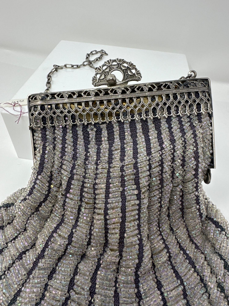 Lot # 71 - Antique Beaded Evening Purse – Silver & Charcoal Stripe