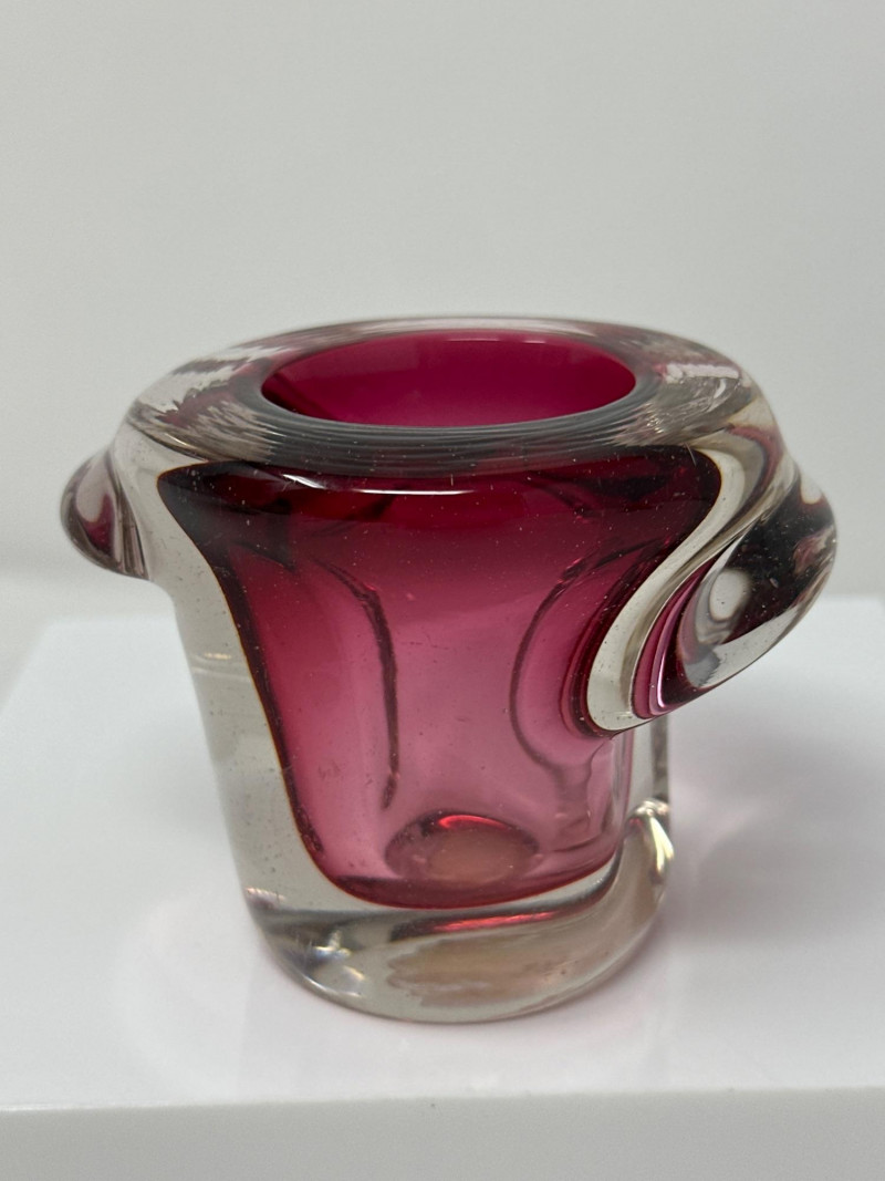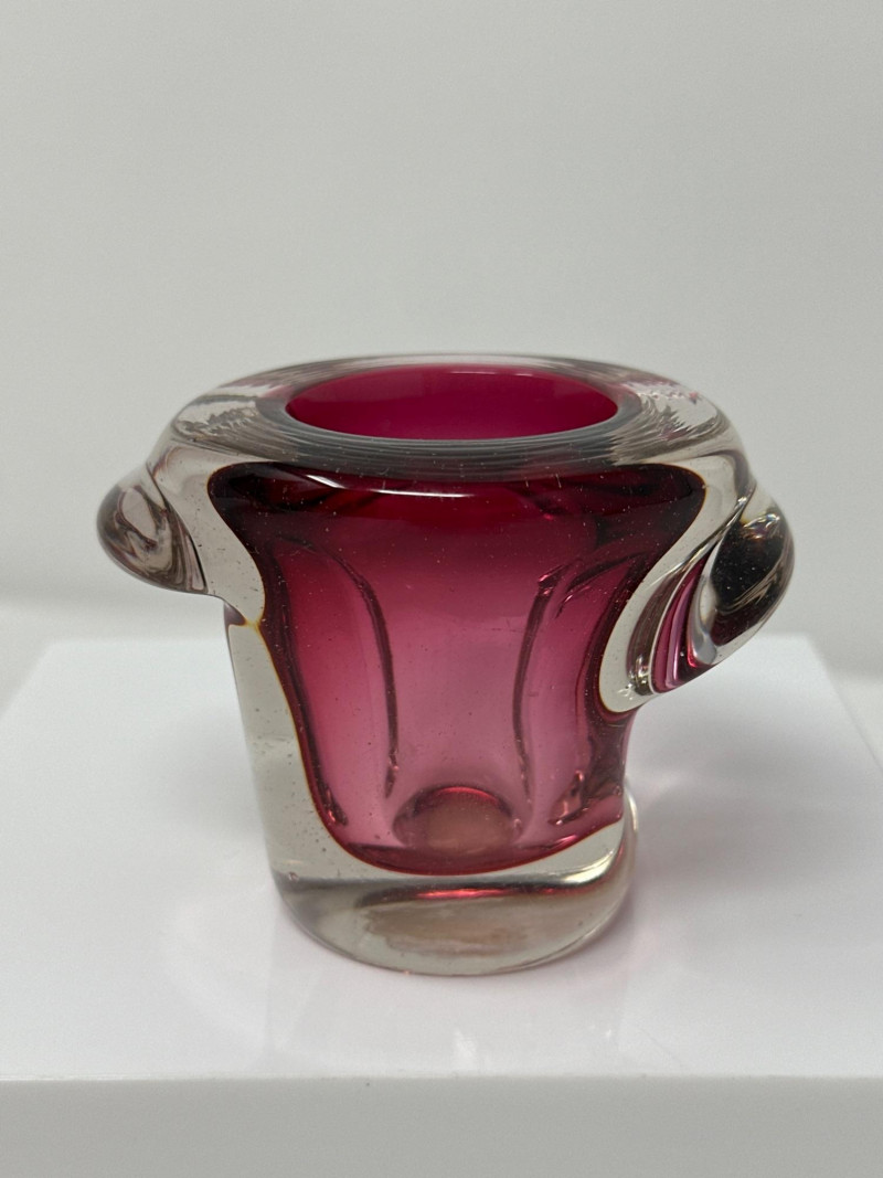 Lot # 74 - Murano Art Glass Vase and Toothpick Holder – Pink & Clear