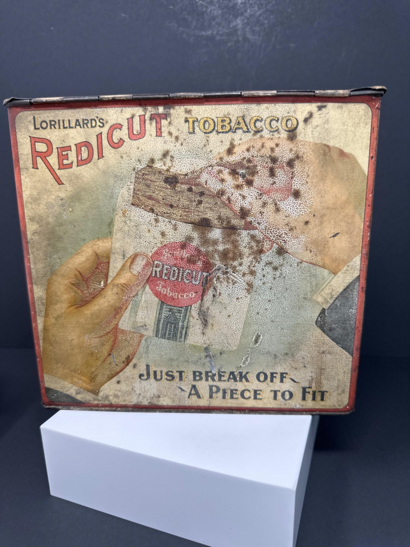 Lot # 104 - Lorillard’s Redicut Tobacco Tin – “Just Break Off a Piece to Fit”