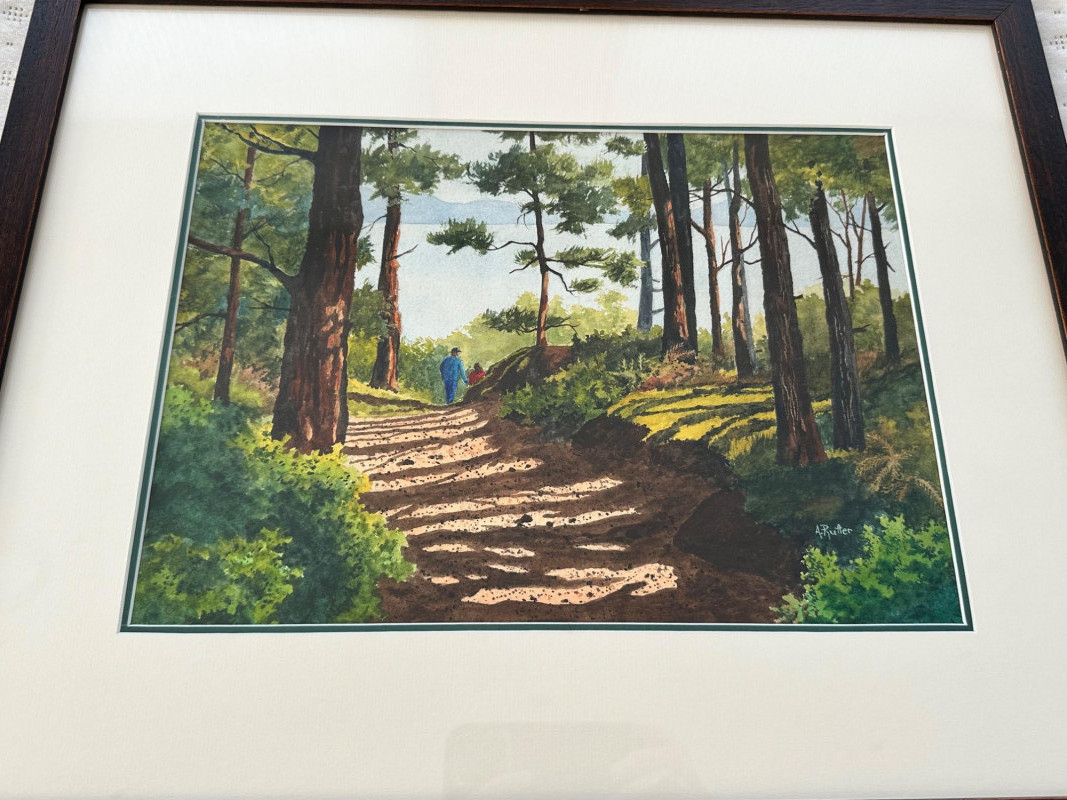Lot # 48 - Ann Rutter – “Afternoon Walk, Lopez Island” – Watercolor, Framed