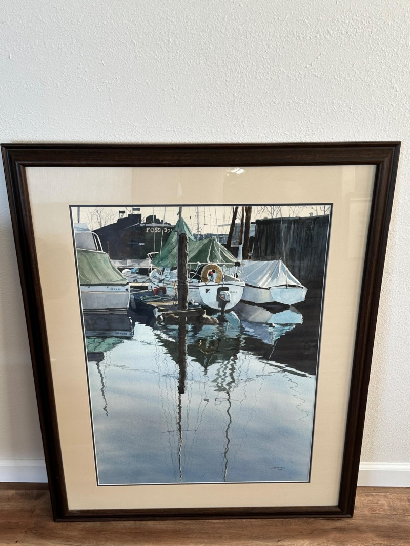Lot # 85 - Joan Reeves – “Seattle Harbor, Calm Day” – Watercolor, 1983