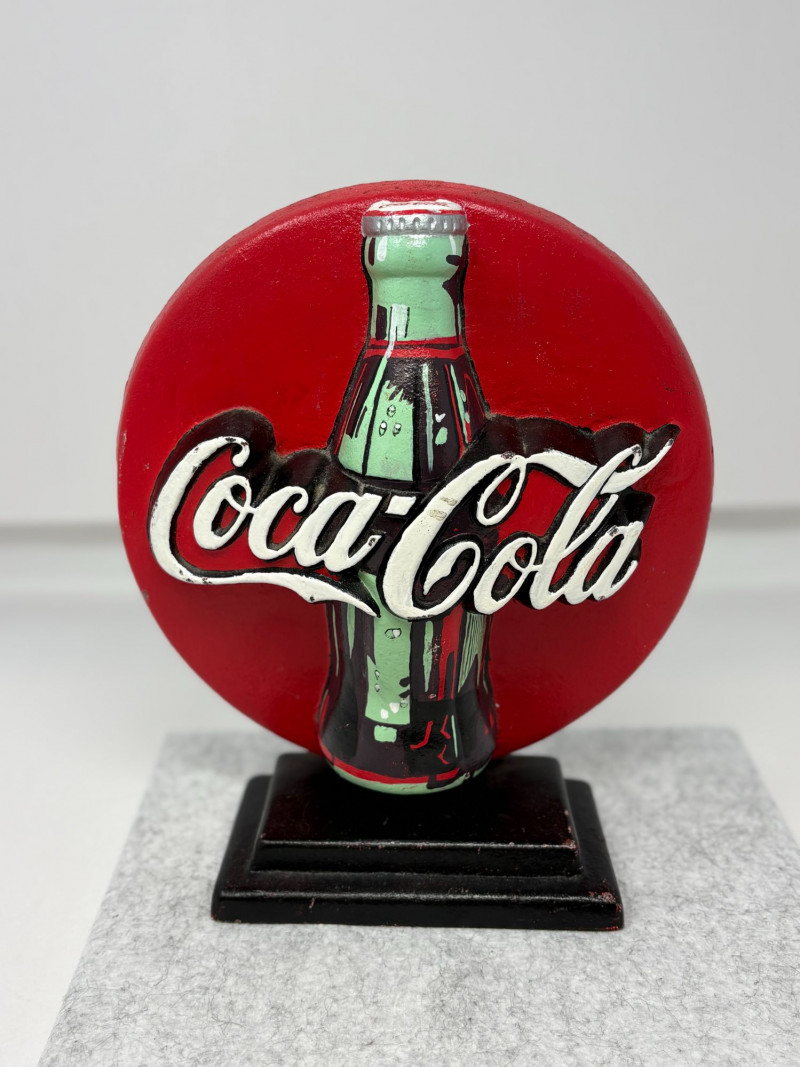 Keep those doors from wandering off with this delightfully retro Coca-Cola doorstop! With its bold red backdrop and vintage‑inspired Coca‑Cola motif; mid‑century aesthetic.