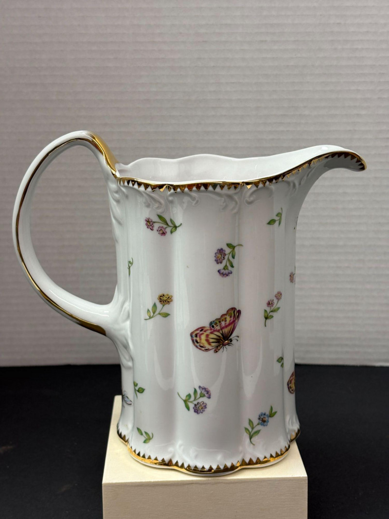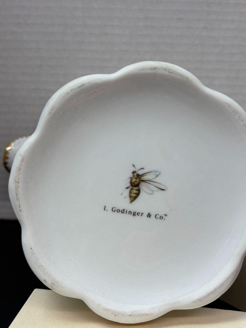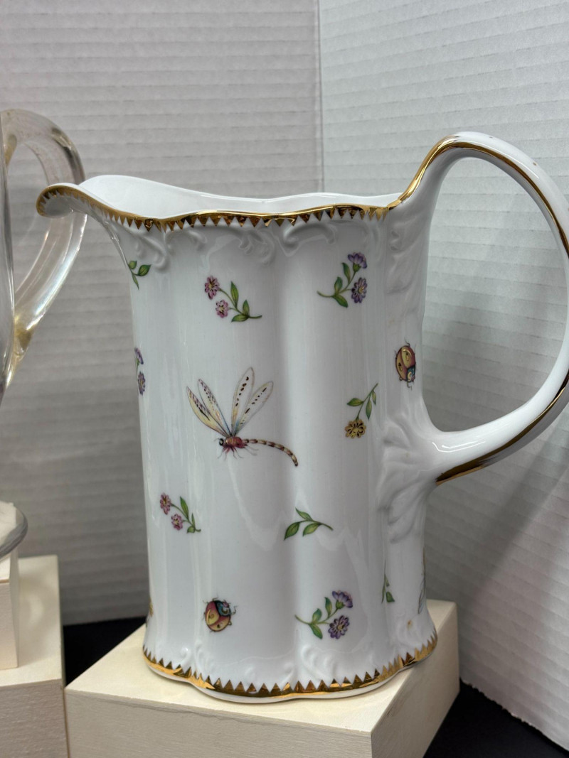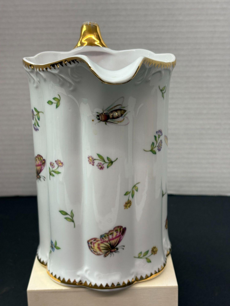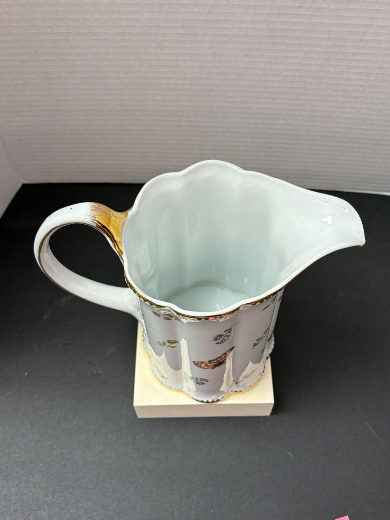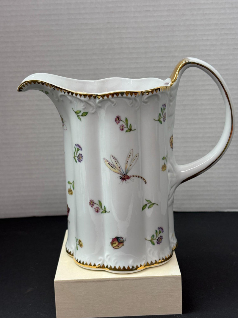 Richly detailed with raised florals and a graceful dragonfly motif, finished with elegant gold accents. A classic expression of Majolica’s warm, old‑world charm. Approx. 7" high × 8" wide.