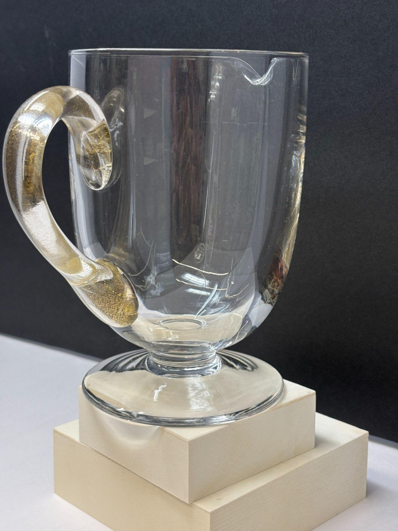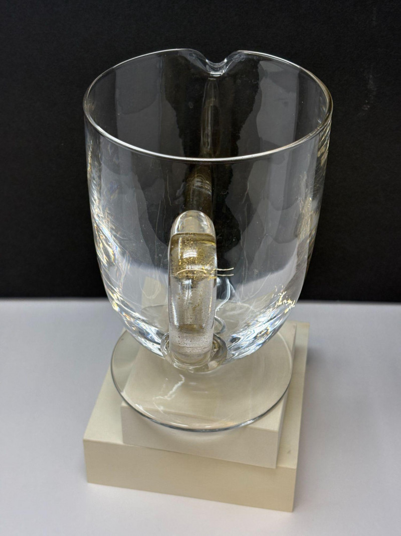 A luminous, minimalist form crafted in the Venetian tradition, prized for its clarity and sculptural purity. A timeless statement of understated luxury. Approx. 7" high × 8" wide.