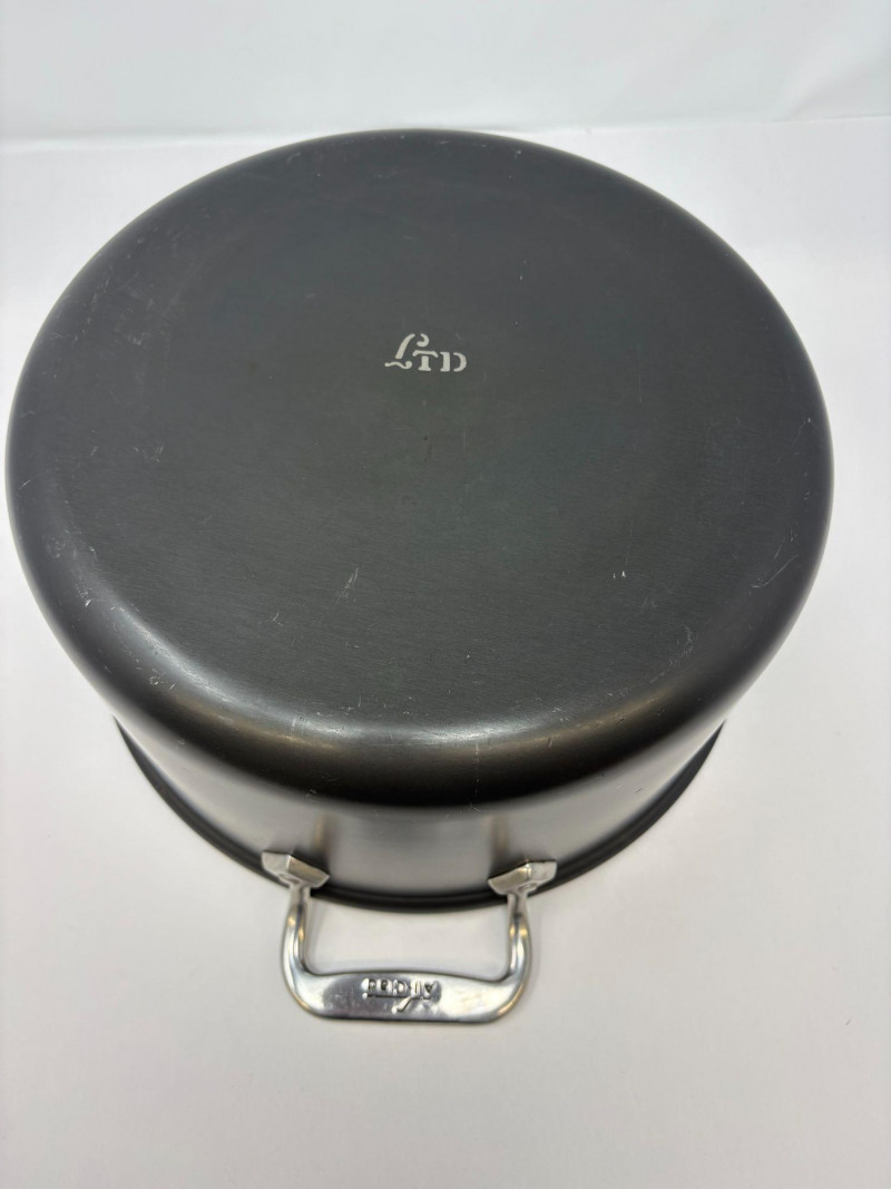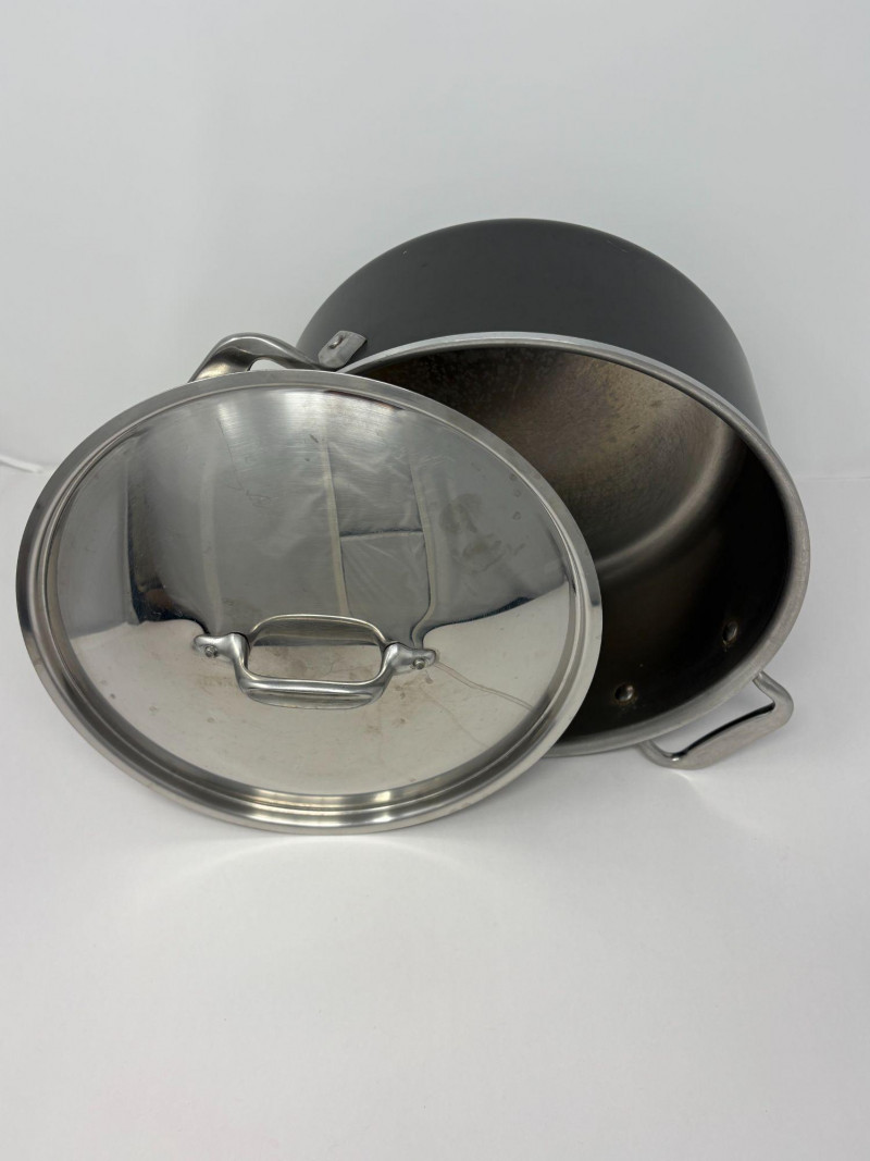 5QT All-Clad LTD Stock Pot with Lid. Designed for professional kitchens, this All-Clad LTD Stockpot is ideal for preparing large quantities of soup, chili or stews. With aluminum core that’s bonded between a polished stainless-steel interior and an anodized-aluminum exterior, heat is absorbed and distributed quickly and evenly. Tight-fitting lid will keep moisture in and intensify flavors. Stainless-steel handles are riveted for superior comfort and durability.