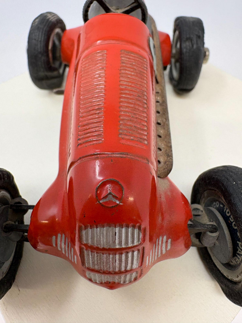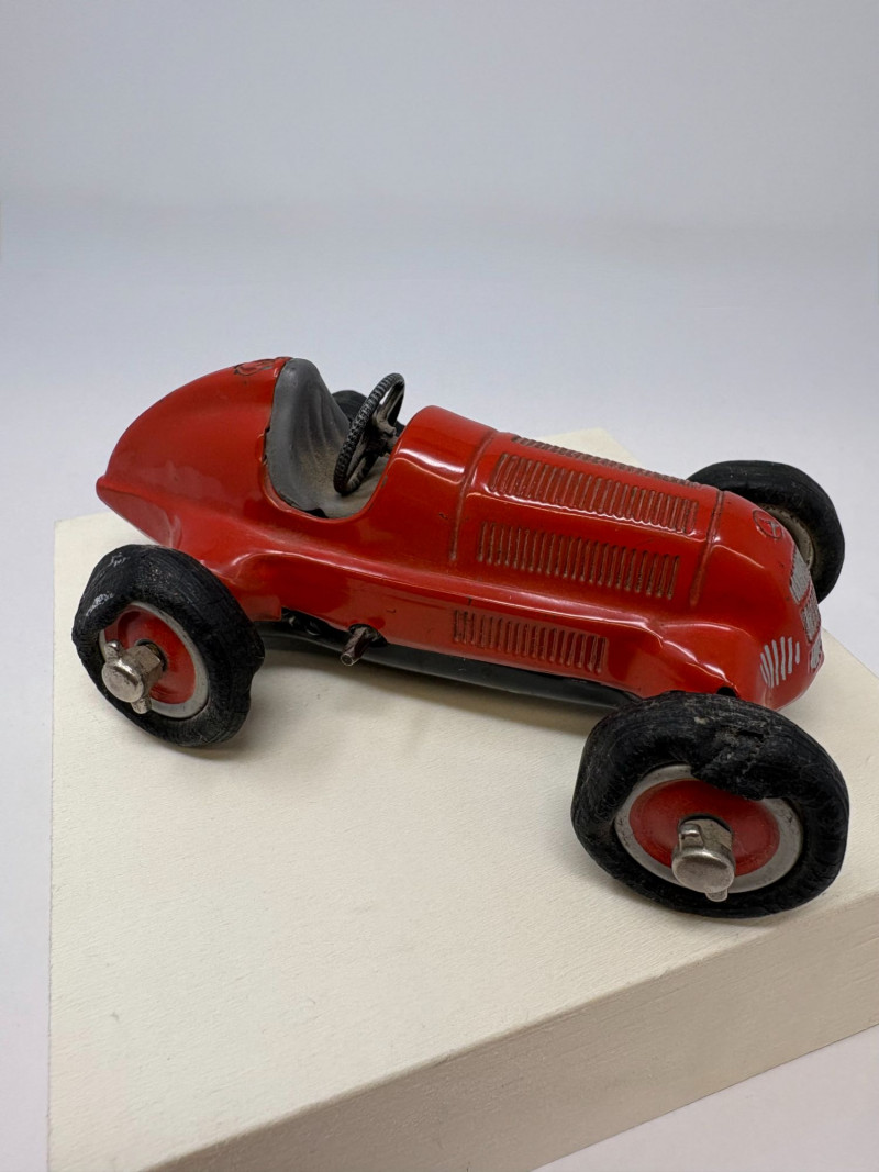 Schuco 1936 Mercedes miniature measuring 5" × 3.5" × 2.5". A premium German diecast model prized for its craftsmanship, historical appeal, and display‑ready presence. Ideal for collectors of early automotive icons. This Schuco 1936 Mercedes model captures the refined engineering and sculptural elegance that defined pre‑war German automotive design. Compact yet visually commanding at 5 inches long, 3.5 inches wide, and 2.5 inches tall, it embodies the precision and craftsmanship that made Schuco a benchmark in early diecast production. The model’s period‑authentic contours, balanced proportions, and quality construction evoke the prestige of Mercedes’ golden era. Its weight, finish, and detailing give it an heirloom‑quality presence—an ideal piece for curated shelves, vintage automotive displays, or collectors who appreciate historically significant miniatures. Well preserved condition with expected age‑appropriate wear. Structurally sound and display‑ready.