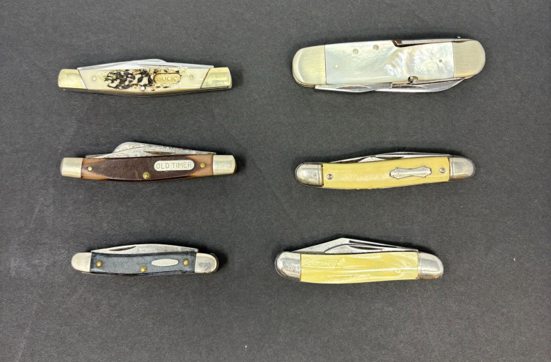 Lot # 59 - 6 Pocket Knives – Buck, Schrade, Ranger & Classic Yellow Handle Folder