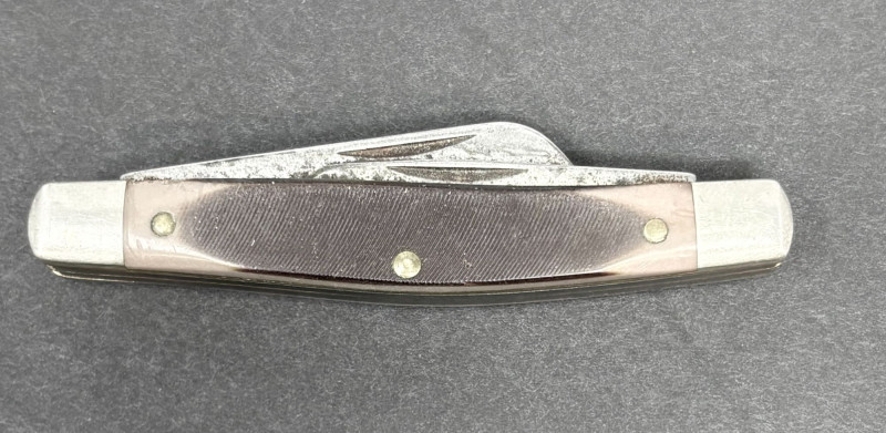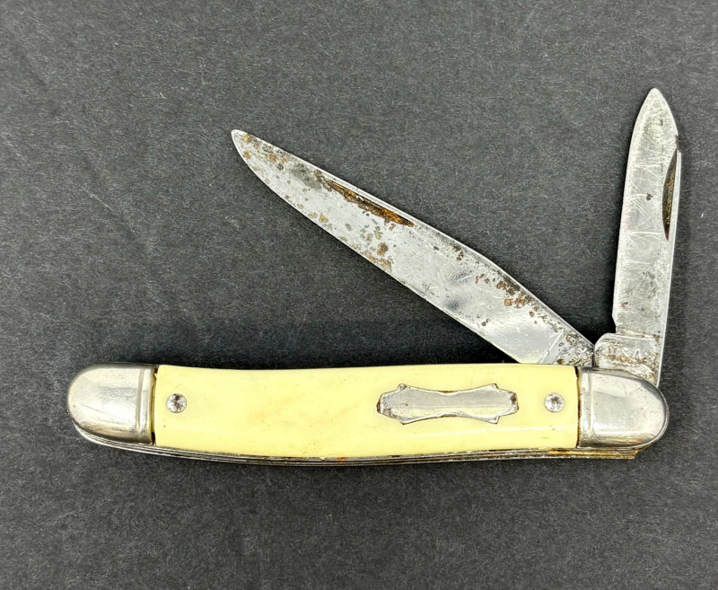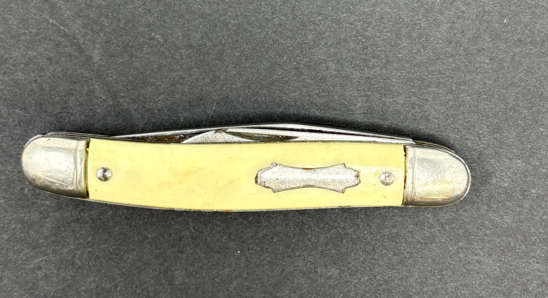 A six‑knife vintage collection featuring Buck, Schrade, Ranger, and classic yellow‑handle folders. This grouping highlights a mix of Stockman, jack, and compact multi‑tool patterns, each photographed to show blade configuration and handle detail. Sizes range from 2¾" to 3½" closed, making the lot ideal for collectors seeking variety in scale, maker, and function. Condition varies with age‑appropriate wear, offering authentic character across the set. Approx. 3" closed.