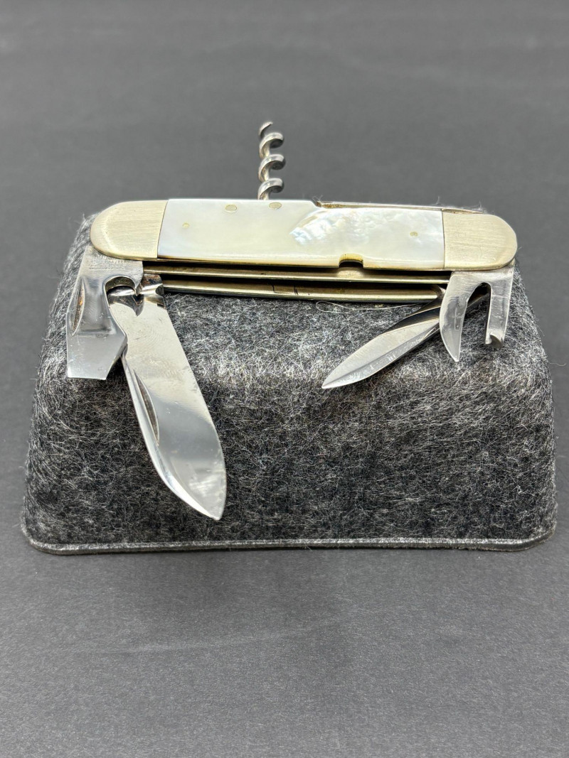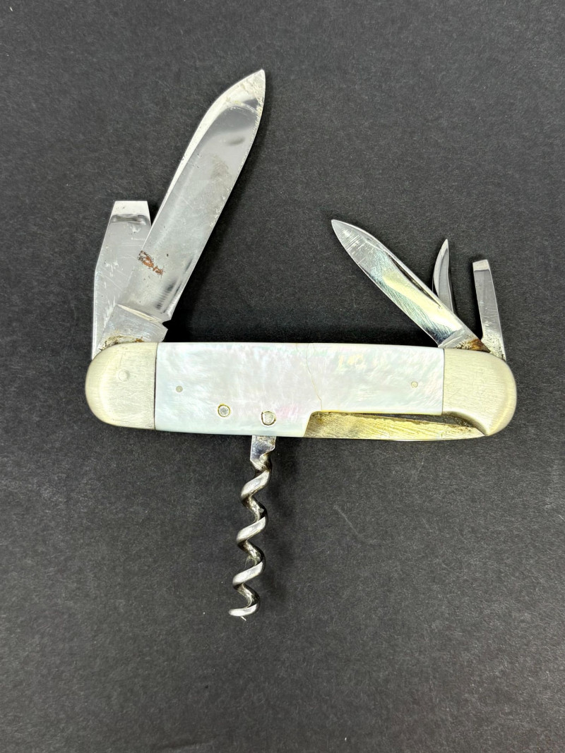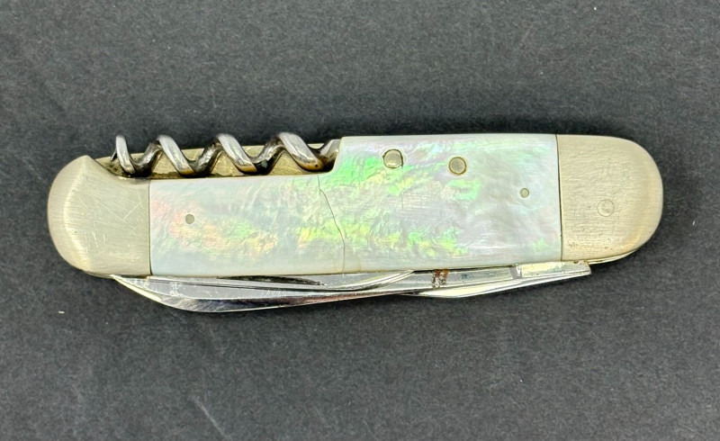 Compact multi‑tool form with primary blade, corkscrew, and auxiliary implements. Approx. 2¾" closed.