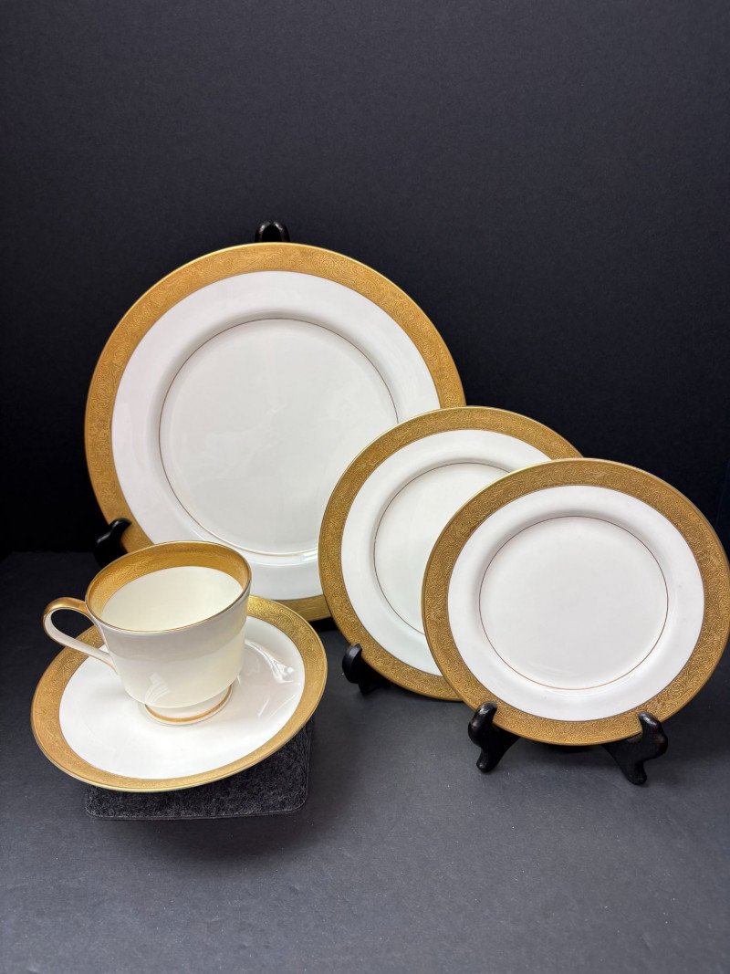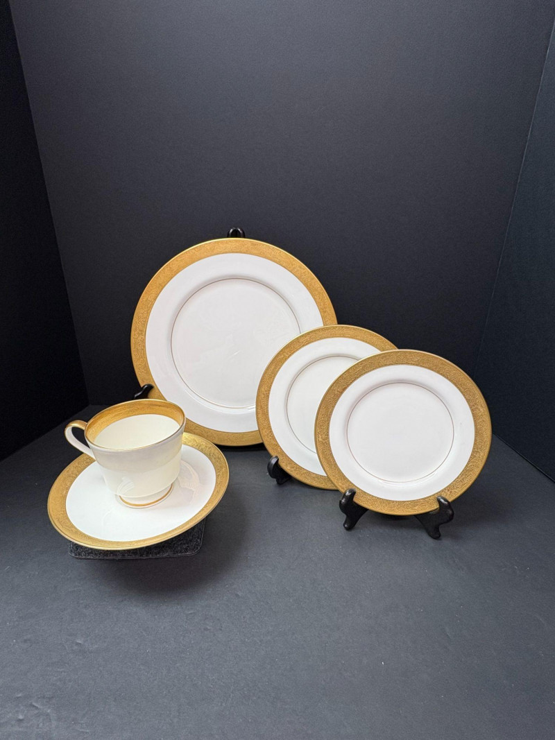 Lot # 62 - Mikasa “Harrow” Bone China – Gold‑Encrusted Starter Set 20 Pieces