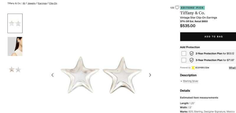 A timeless Tiffany classic, these sterling silver star clip earrings capture the house’s signature blend of simplicity and sculptural charm. Crafted in bright .925 silver, each star is cleanly contoured with a modern, minimalist profile that reflects light beautifully from every angle. Length: 1.25"Width: 1.5"Marks: 925, Sterling, Designer Signature, Mexico Total Item Weight (g): 17.8