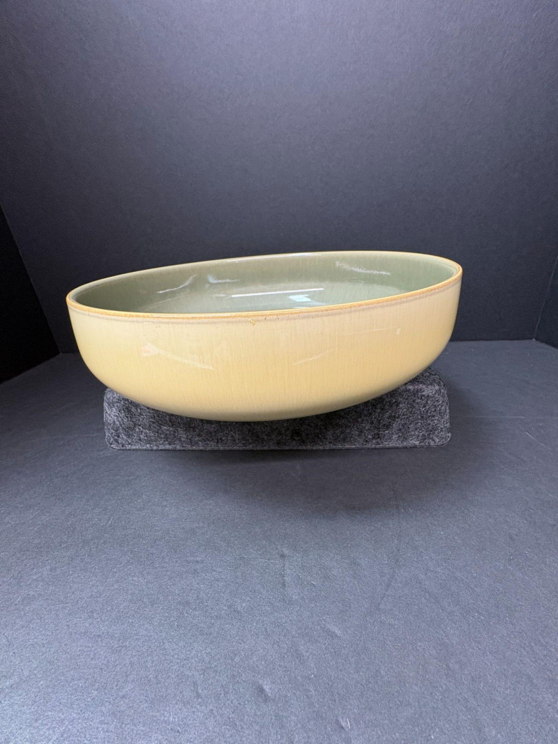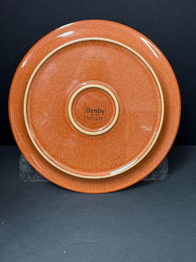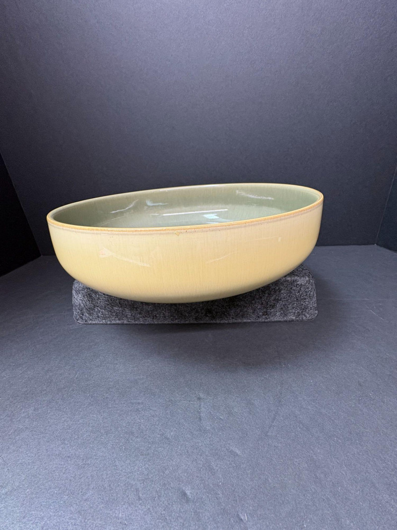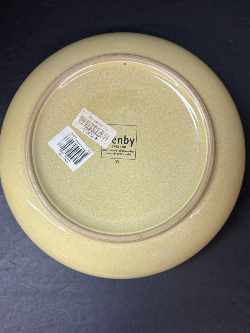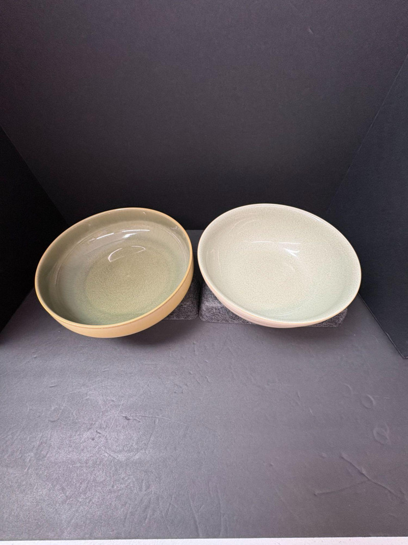 A coordinated assortment of Denby’s Fire pattern a modern solid‑glaze stoneware, featuring warm contemporary tones that blend well across the brand’s Fire, Linen, and Celadon color families. Durable, oven‑to‑table pieces made in England. One burnt‑orange dinner plate (approx. 10.25") Two yellow/cream 9" bowls Three celadon‑green 9" salad platesIncludes (6 Pieces Total):