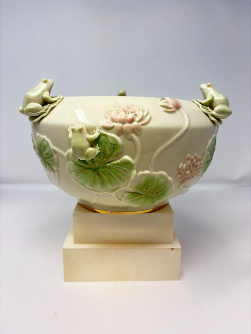Lot # 81 - Lenox Floral Frog Bowl and Froggy Friends – 6 Pieces/Sets