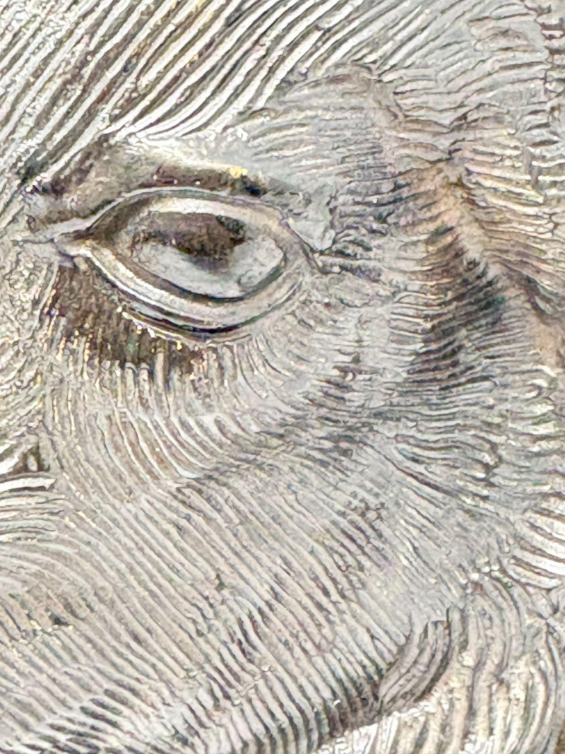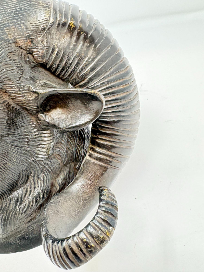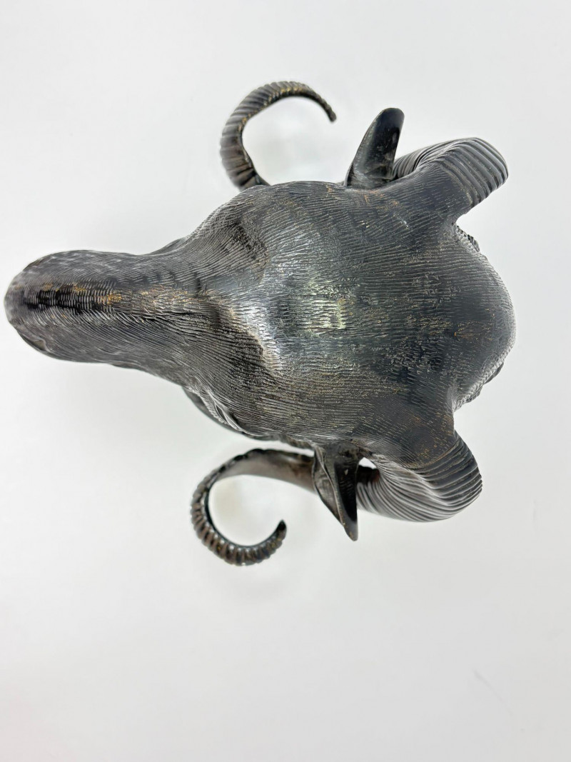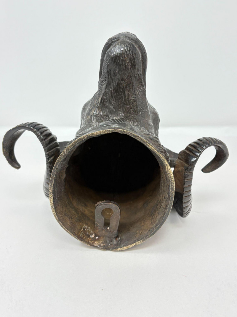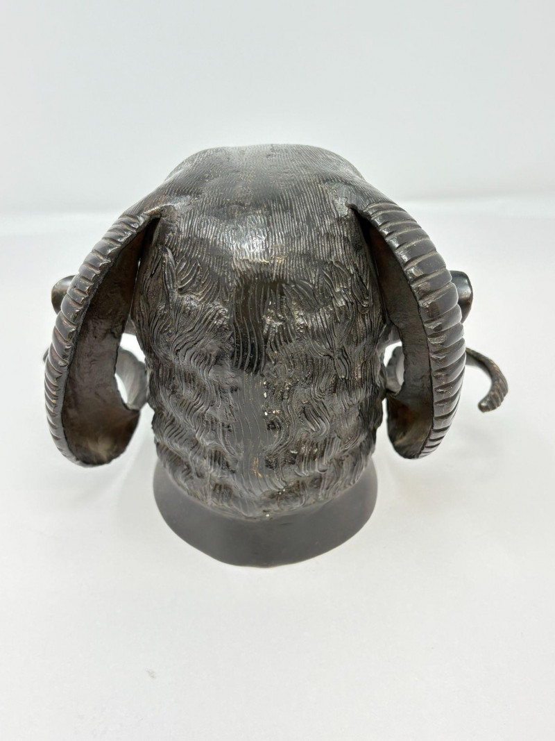 A striking solid bronze ram’s head, hand‑carried home from Scotland. It is crafted with exceptional sculptural detail. The powerful curled horns, textured fleece, and expressive form capture the ram’s enduring symbolism of strength, leadership, and Highland heritage. Dimensions: 6.5" H × 5.75" W