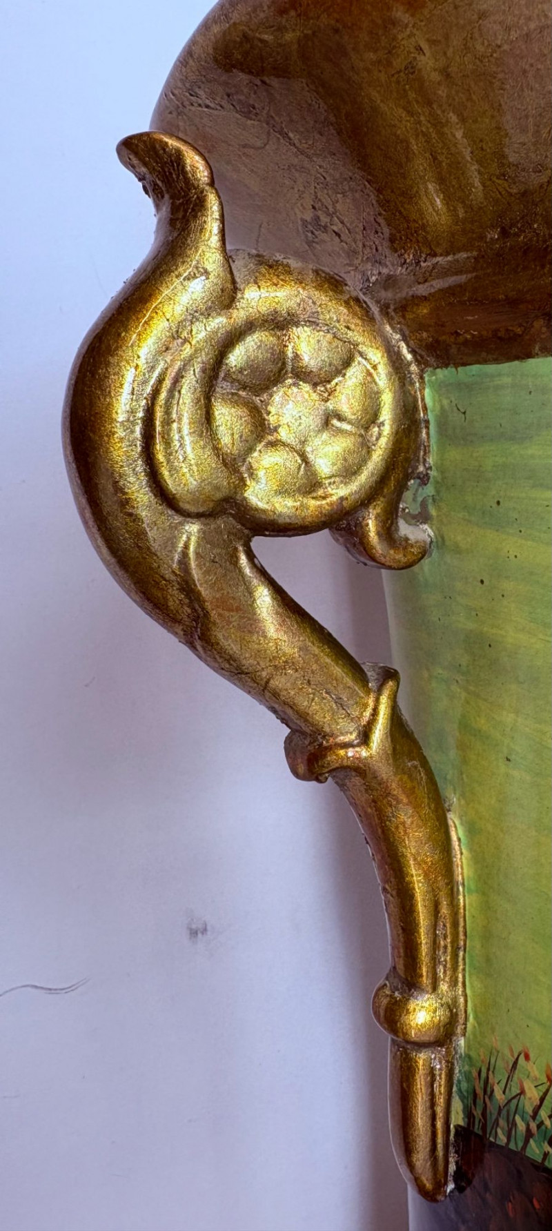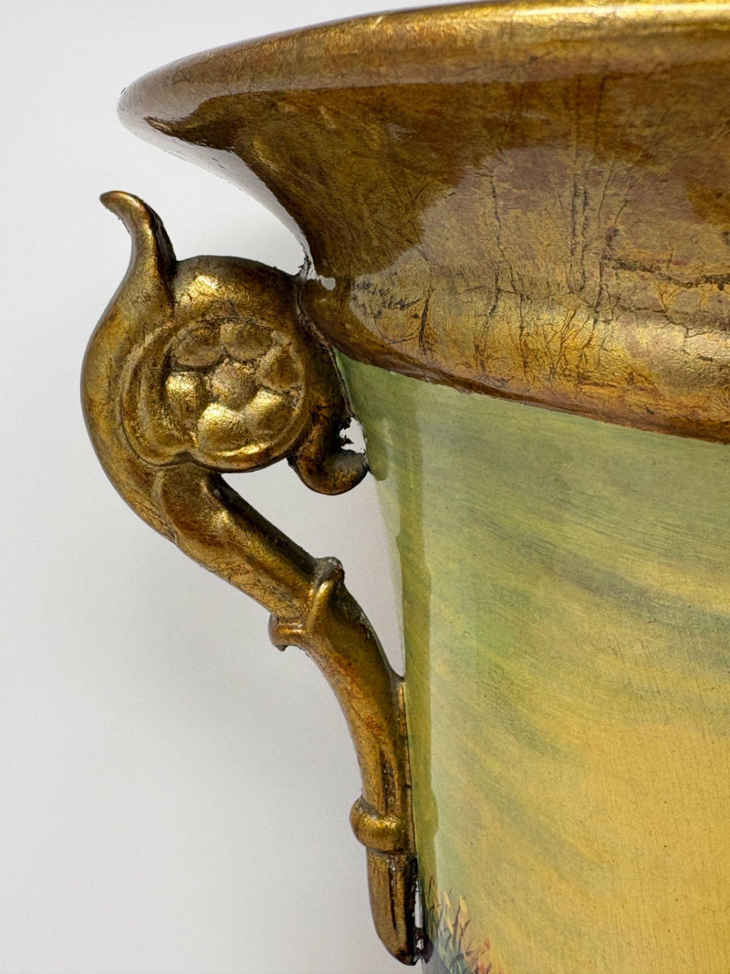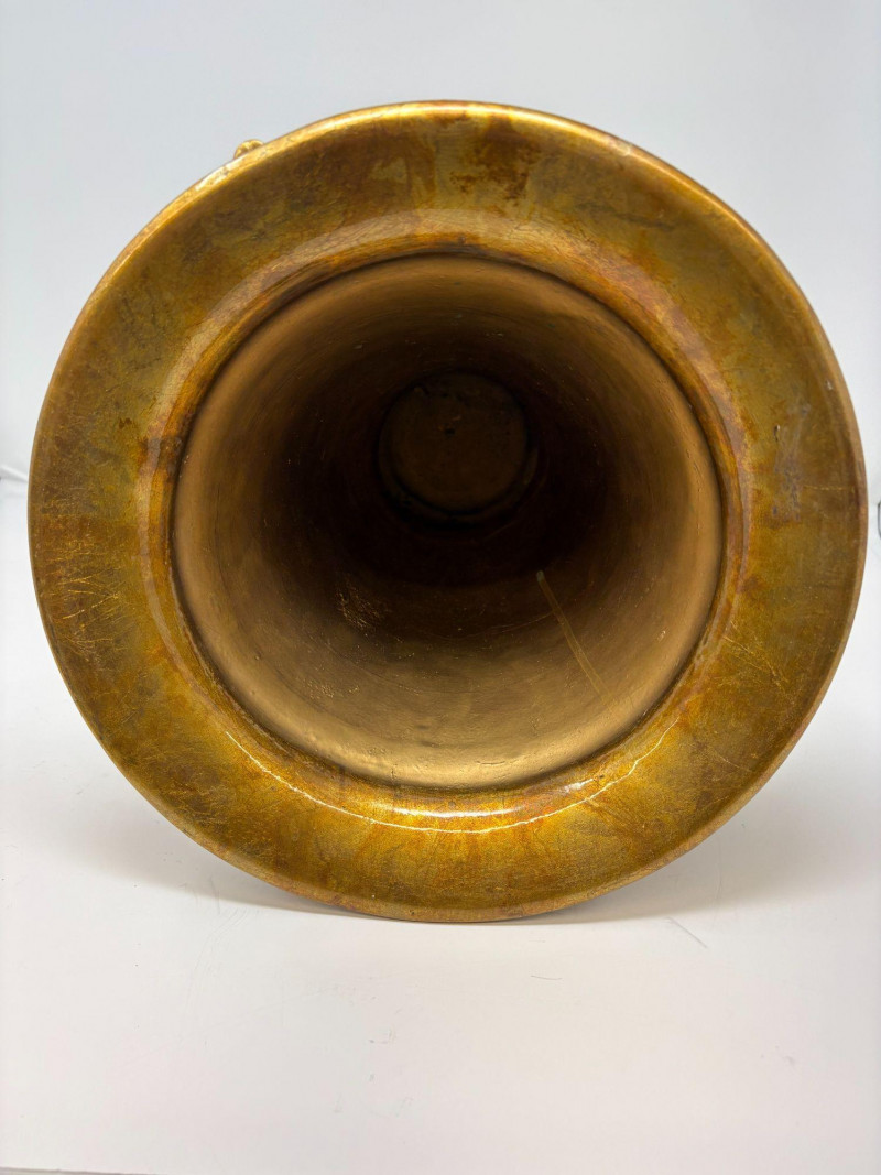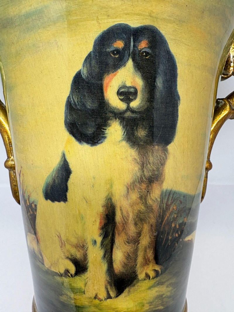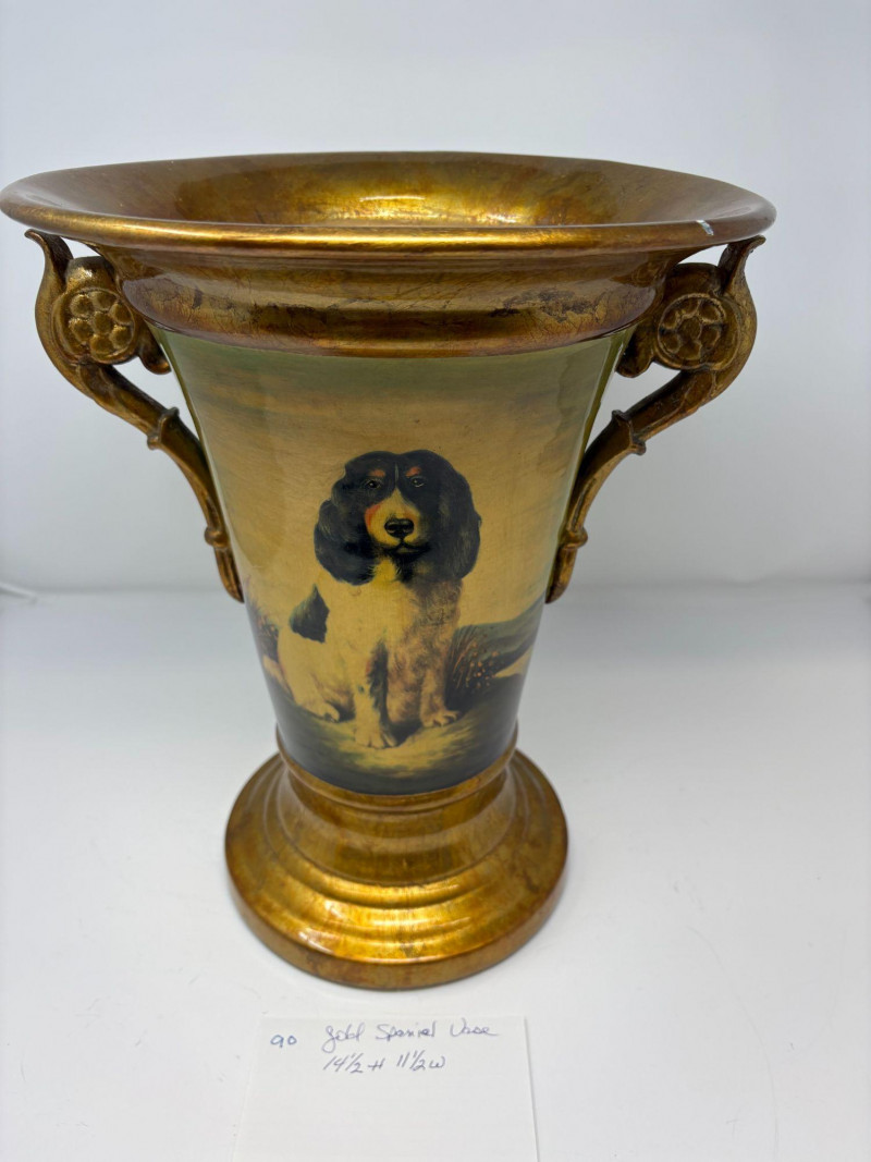 Lot # 90 - Hand‑Painted Gold Porcelain Spaniel Vase — 14.5"