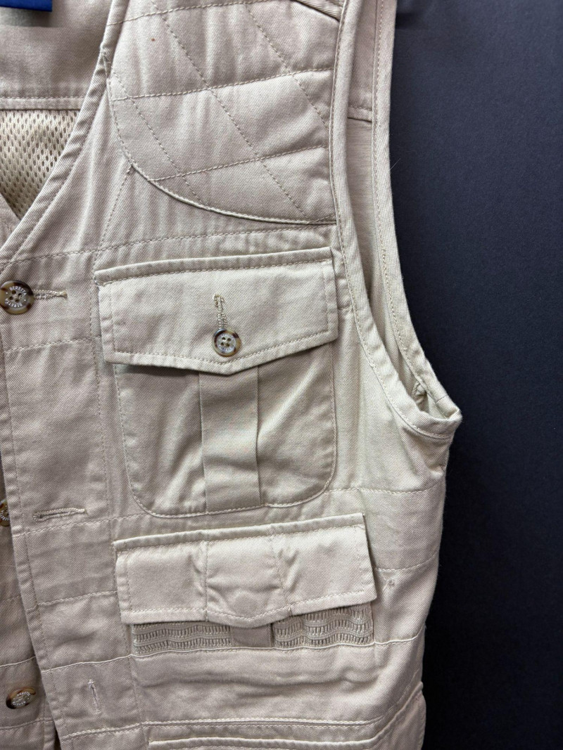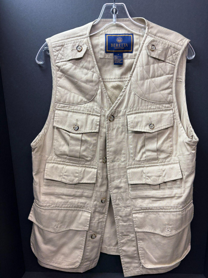A classic field vest from Beretta, crafted with the brand’s signature balance of durability and sporting heritage. This men’s Small features a 100% cotton shell with a soft poly‑cotton lining, offering breathable comfort for range sessions or upland days. The front is outfitted with multiple deep cargo pockets for shells and gear, while the back includes a vented panel designed for ease of movement and temperature control. Finished with Beretta’s woven heritage label and sturdy hardware, it’s a reliable, purpose‑built piece for any shooting enthusiast.