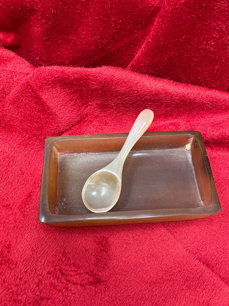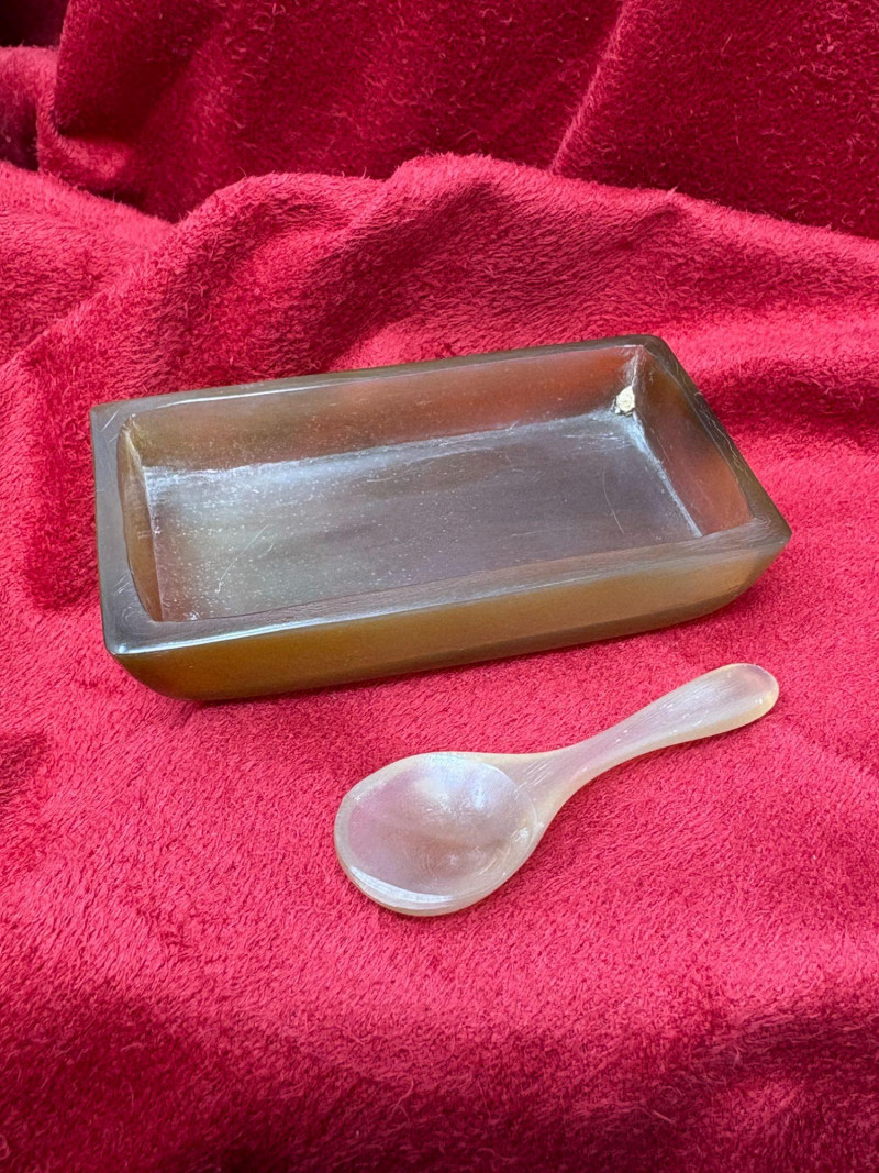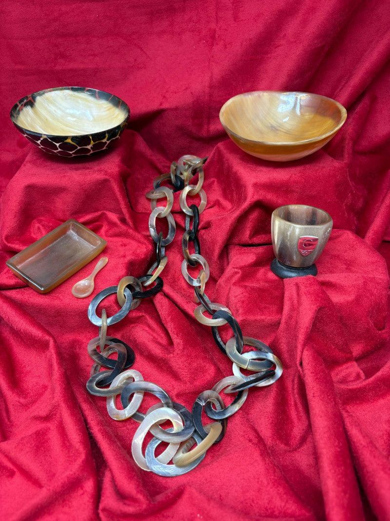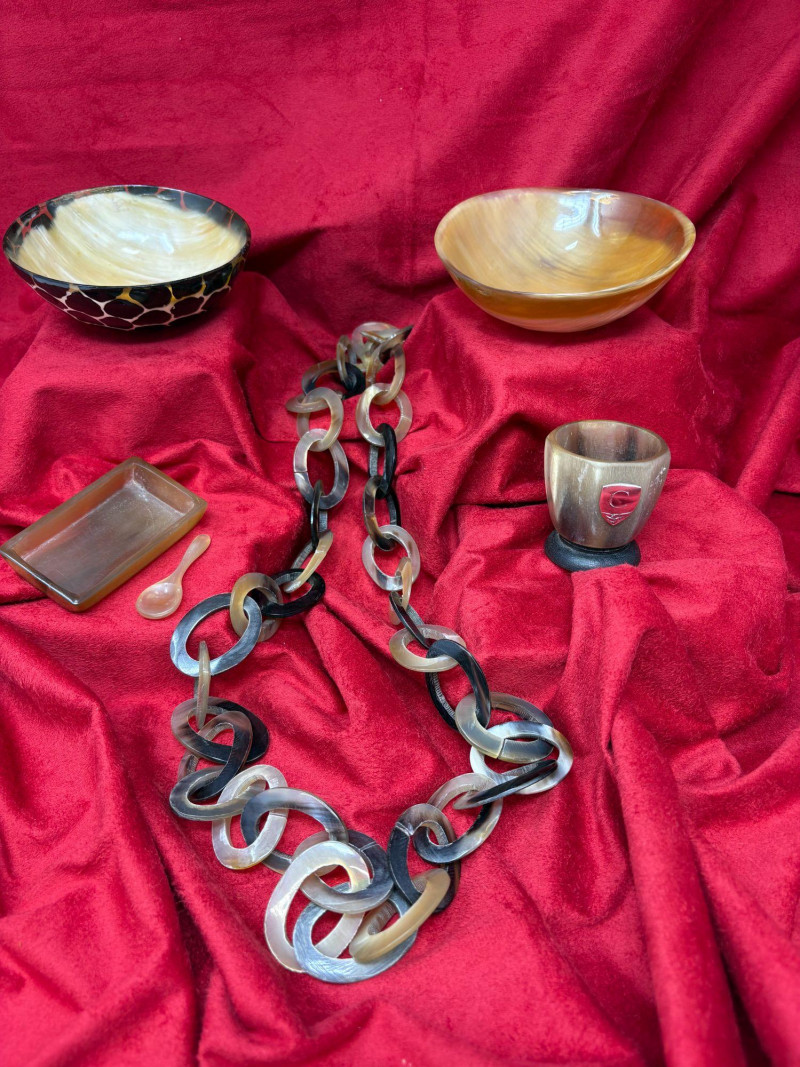 Five‑piece set featuring a horn shot cup 2'H) horn salt dish with spoon (3"), animal‑print horn bowl (4"), yellow bone bowl (4.5"), 20" bone/horn necklace, and additional natural‑material accents. A mix of organic texture and handcrafted style, ideal for décor, display, or collector assortments. Each piece showcases the unique grain, color variation, and artisanal character inherent to natural materials.