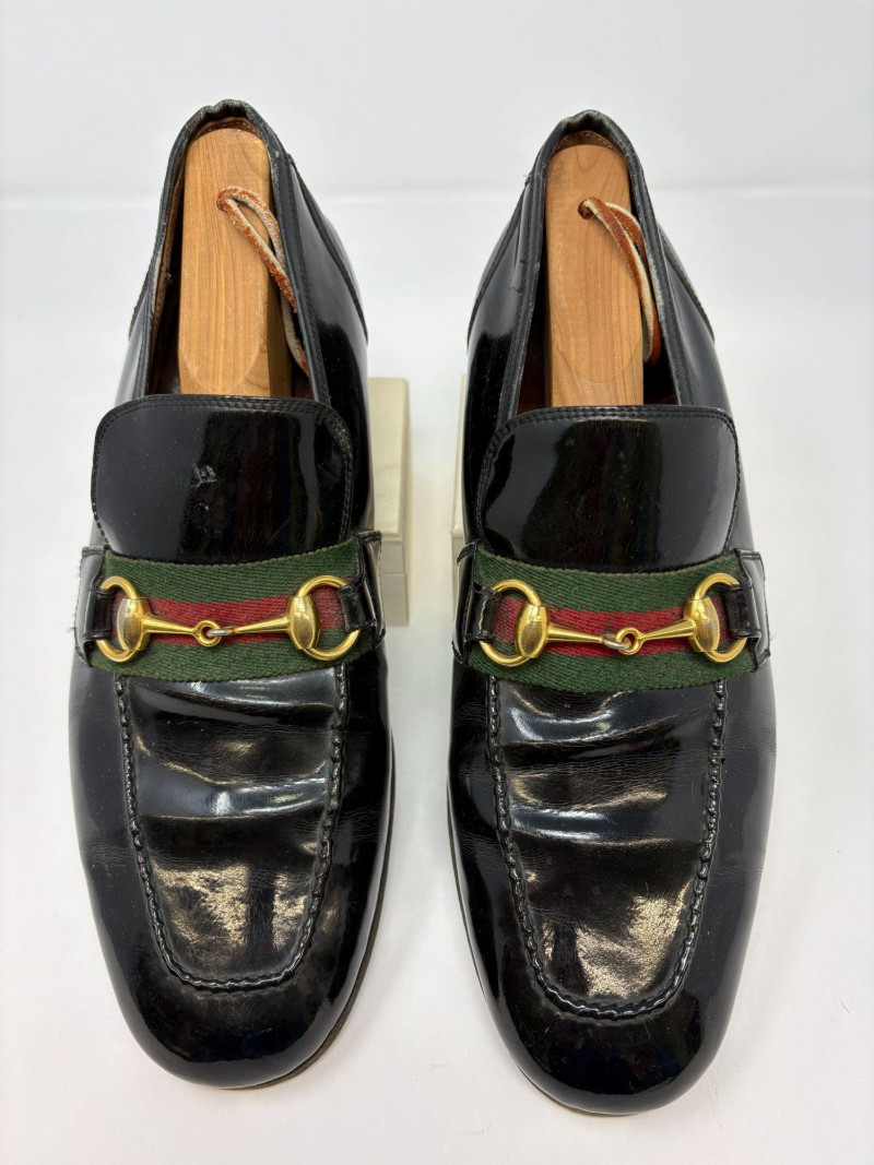 Lot # 97 - Gucci Horsebit Leather Shoes – Black Loafers, Size 42M, Made in Italy
