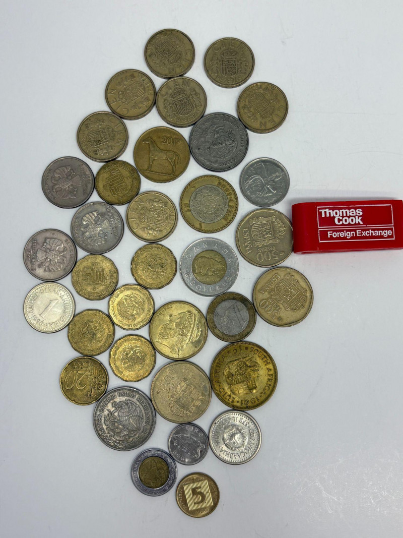 A diverse, travel‑sourced assortment of foreign coins and banknotes spanning multiple countries, eras, and denominations. This mixed world‑money collection includes circulated and uncirculated examples, regional issues, and visually striking notes ideal for collectors, educators, crafters, or display. Highlights visible in the lot include: Banknotes from Southeast Asia, the Middle East, and South America, including Vietnam, Myanmar, Bolivia, and Iraq Multiple higher‑denomination notes and colorful commemorative‑style designs Large spread of world coins in various metals, sizes, and ages All items photographed are included; sold as one complete group A ready‑to‑sort world‑currency bundle offering both variety and volume for the collector or reseller.
