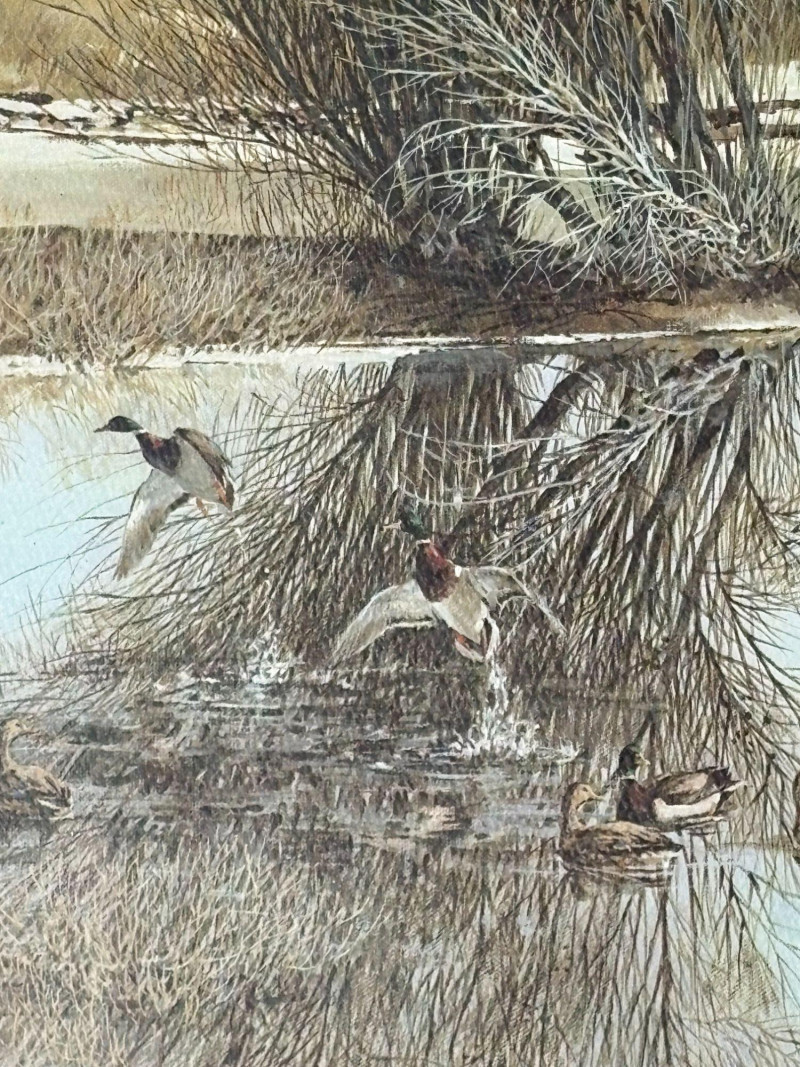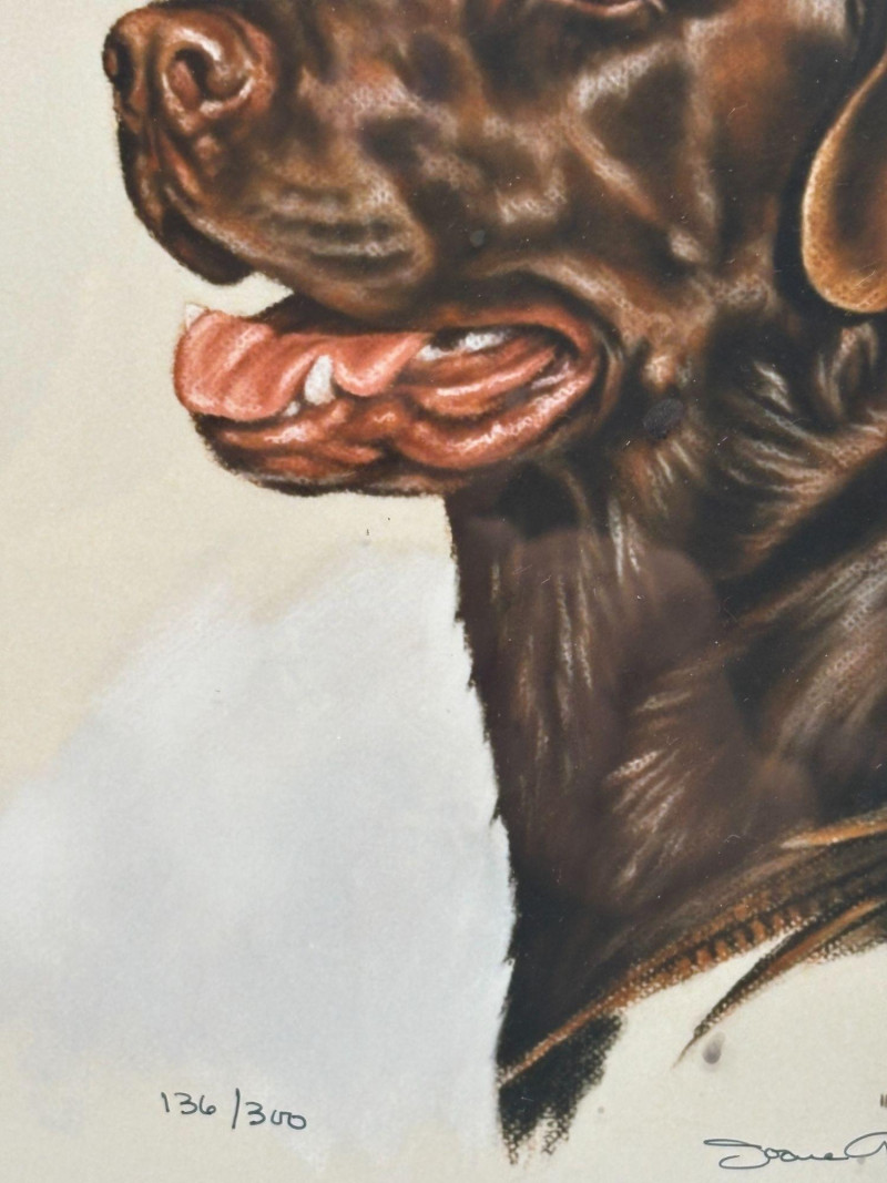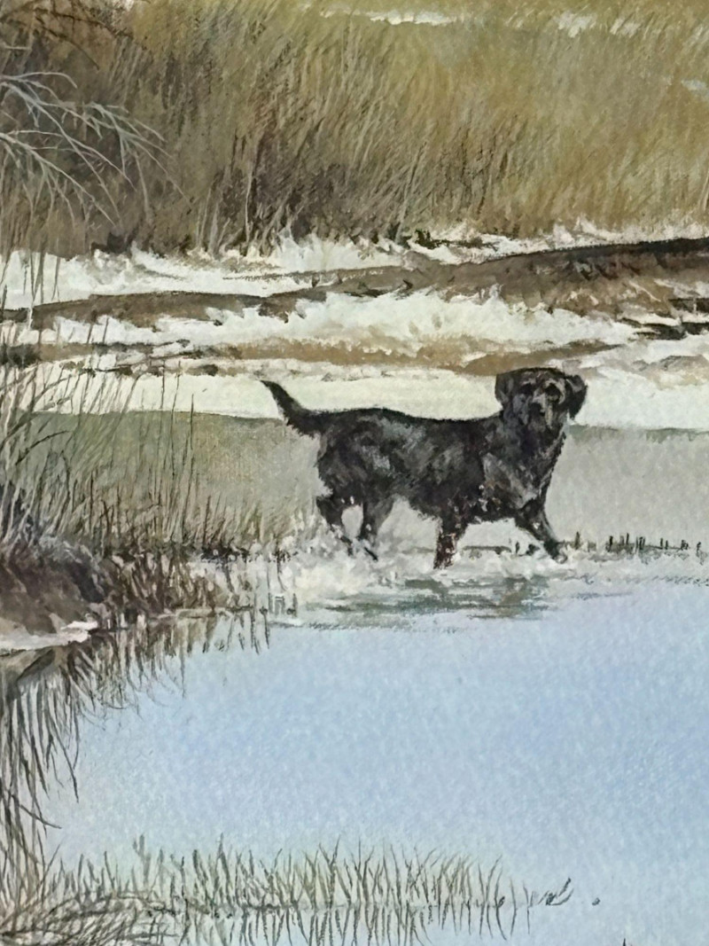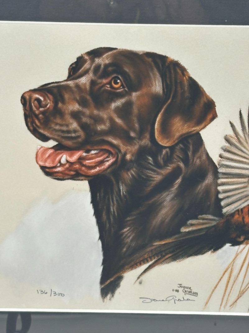 A trio of framed sporting‑art prints, blending classic Labrador imagery with a signed waterfowl marsh scene. All pieces are attractively framed and ready to hang. Numbered prints Included: Black Labrador Portrait Print — approx. 17¼" W × 14¼" H Signed Brundson ’96 Ducks‑in‑Marsh Print — approx. 23¼" W × 19¼" H Black Lab Game Scene Print — traditional sporting‑dog composition A warm, lodge‑style grouping ideal for dog lovers, cabin décor, and wildlife art collectors.