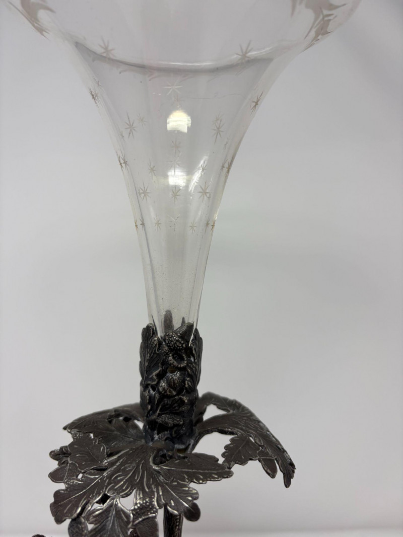 Lot # 109 - Ornate Glass Epergne with Giraffe and Oak Motif Base