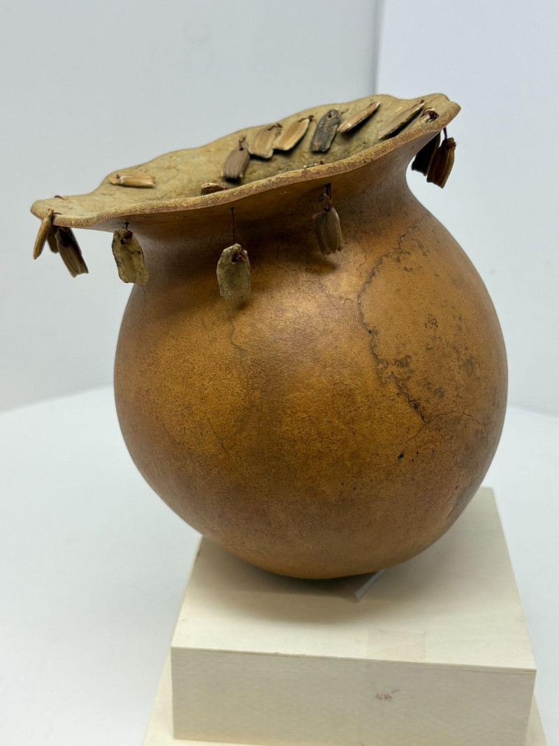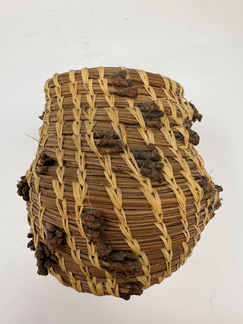 Lot # 112 - Artisan Basket Pair & Decorated Gourd — Natural Fibers & Handcrafted