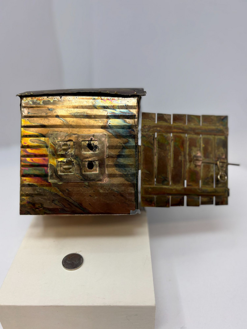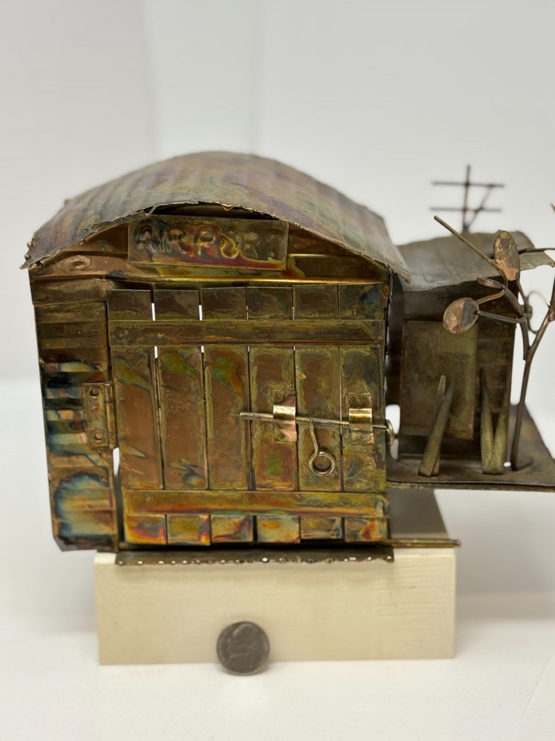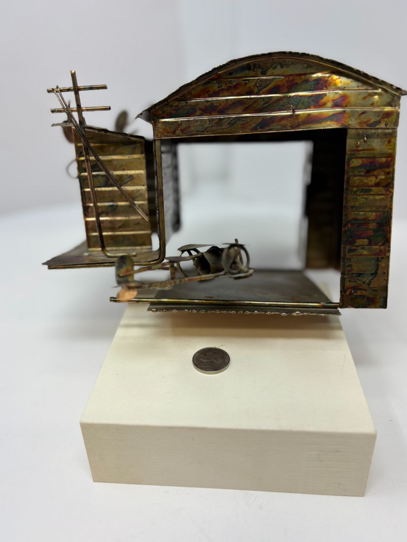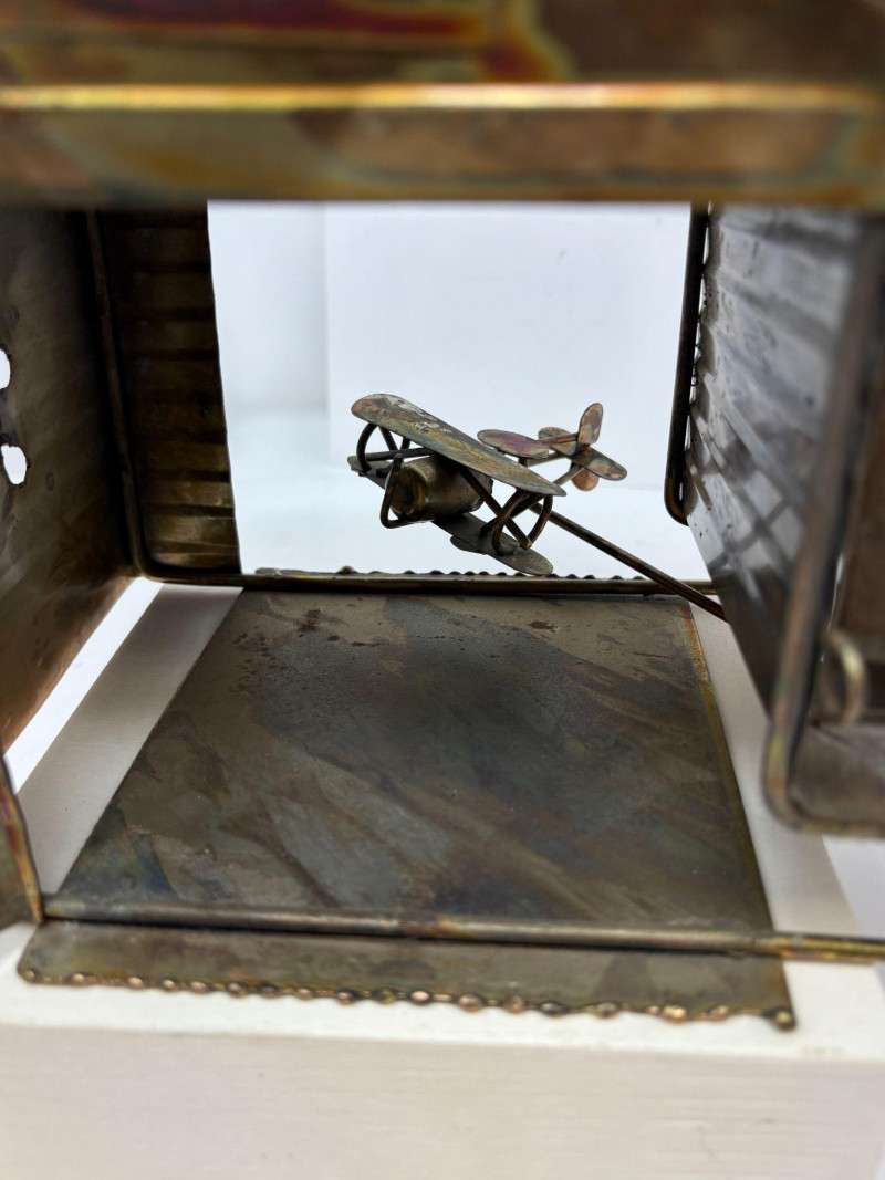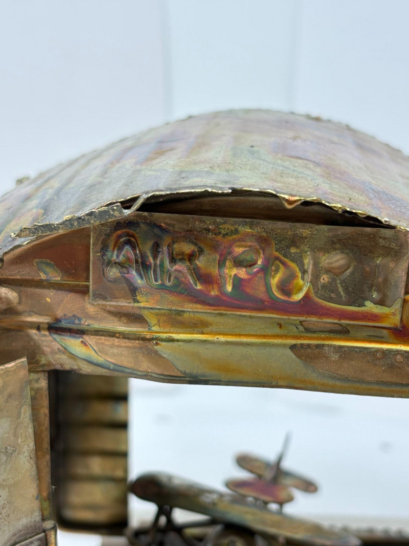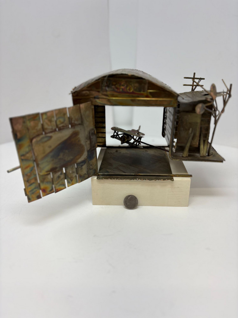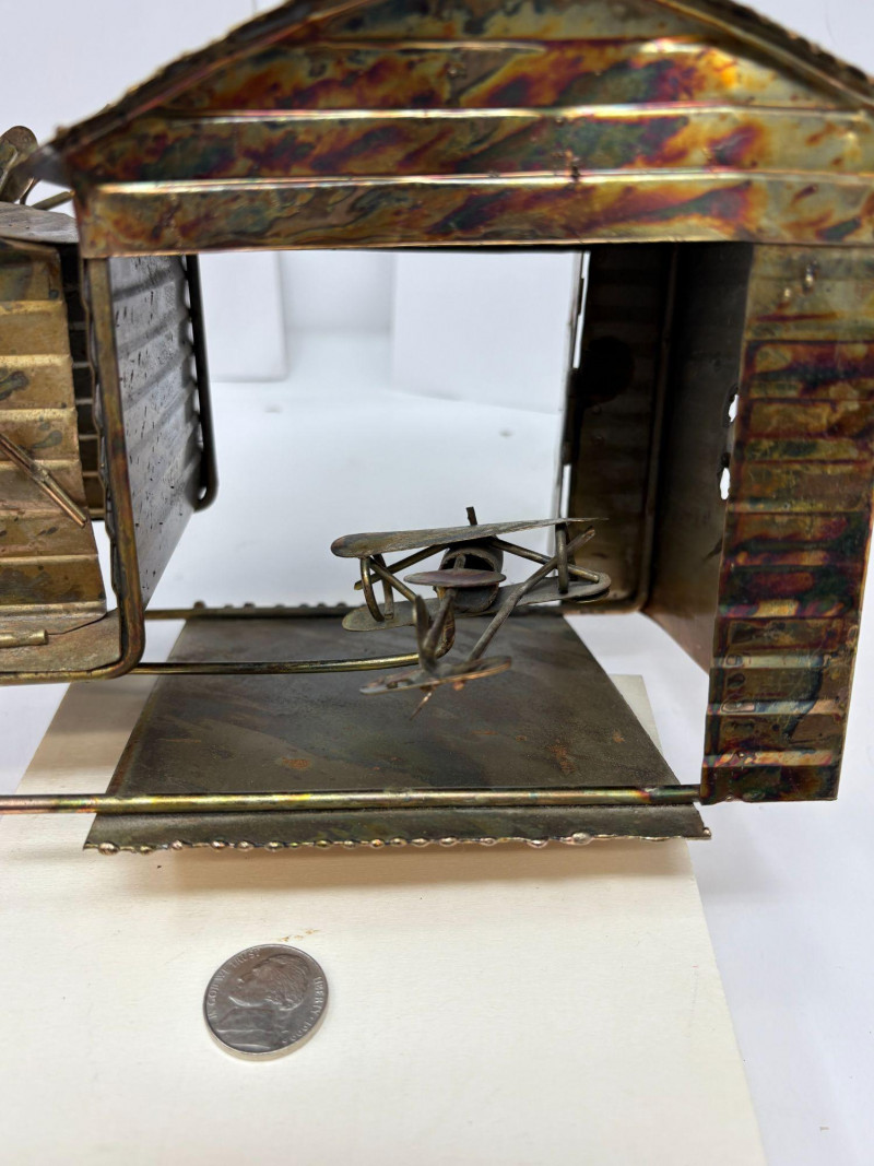 Lot # 114 - Vintage Metal Airplane Hangar Music Box – Handcrafted Tin Construction