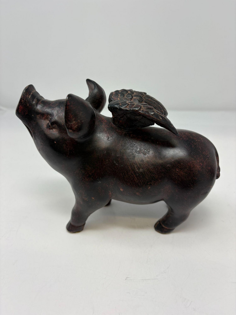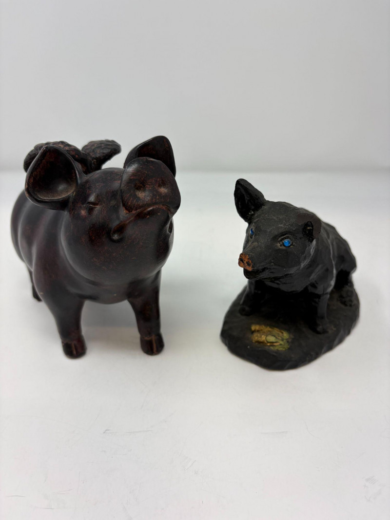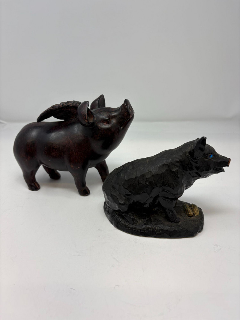 Lot # 117 - Two Pig Figurines – Ceramic Winged Pig & Signed Coal Pig (England)
