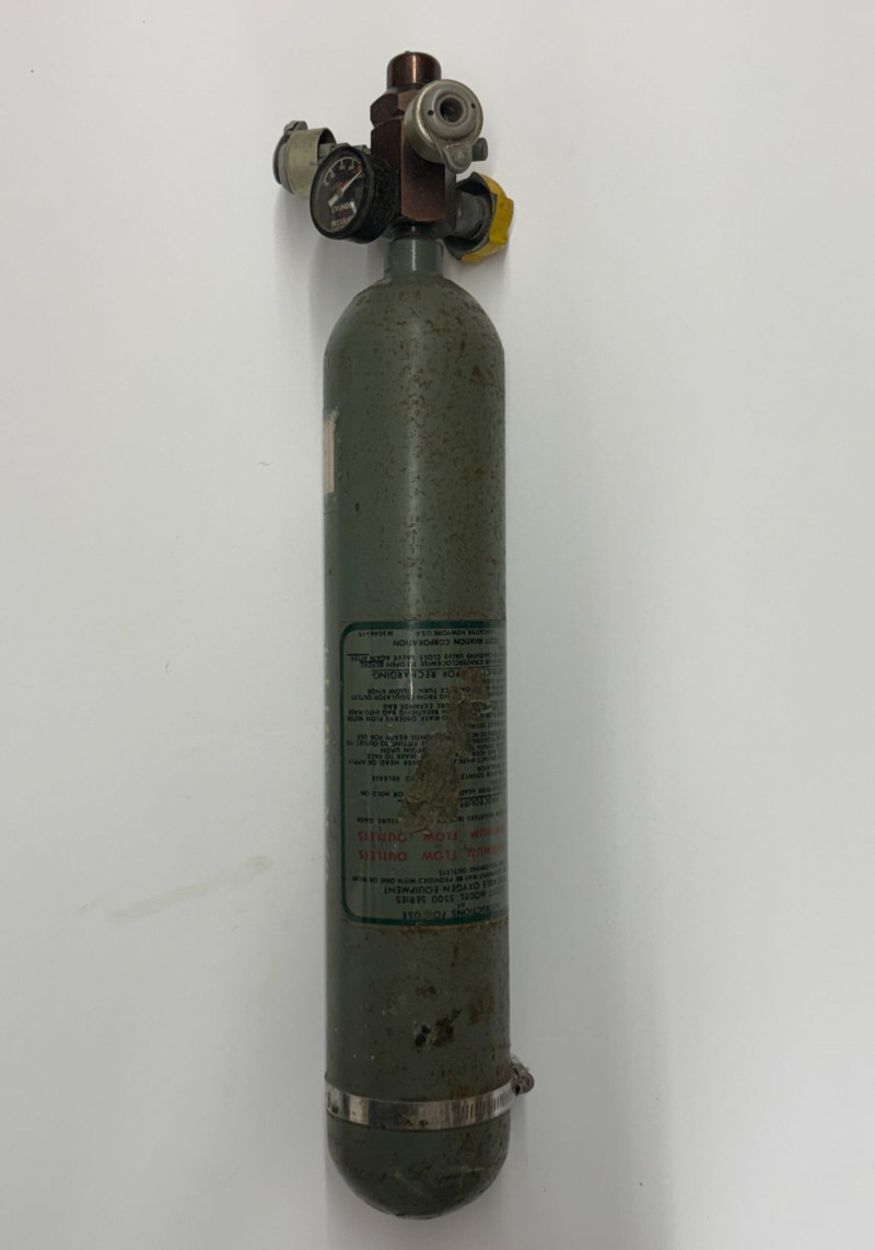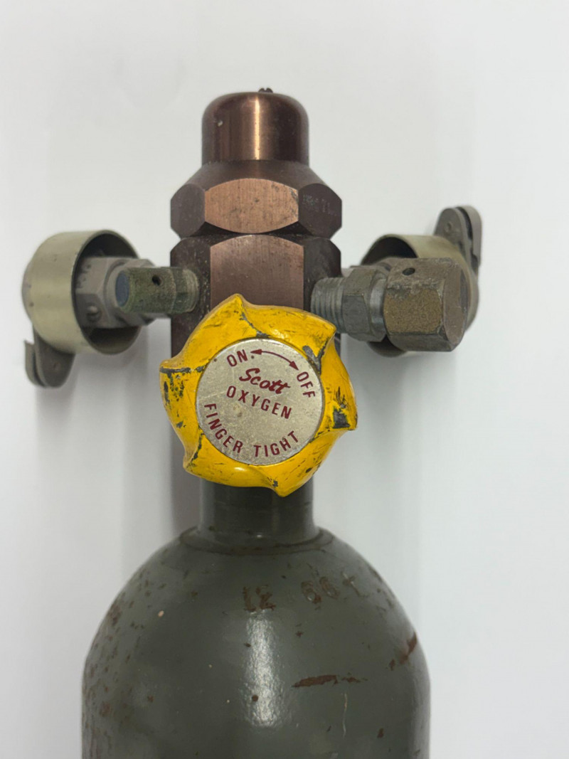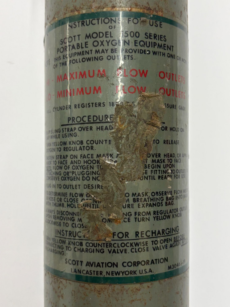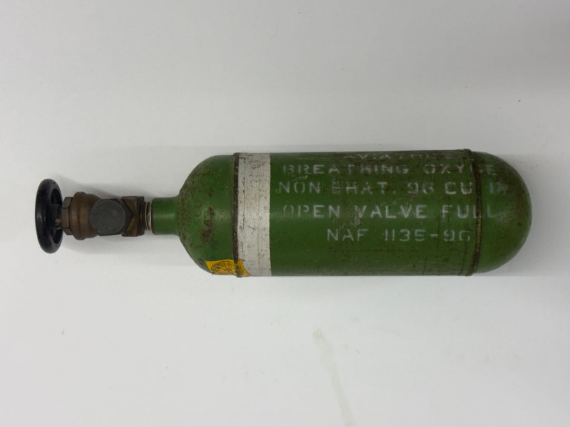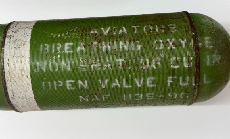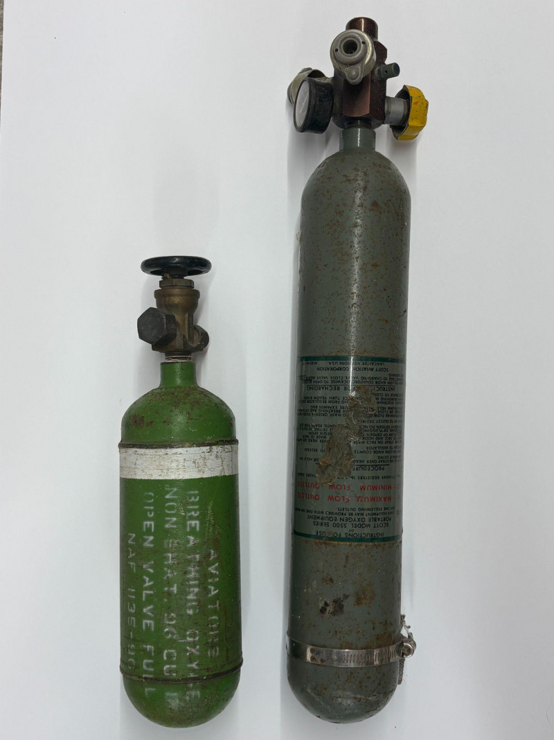 Two distinctive vintage aviation oxygen tanks, each offering a compelling mix of industrial history and collectible appeal.
