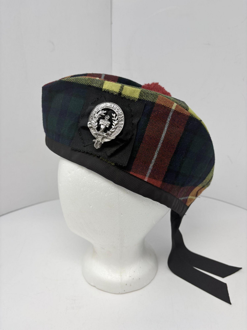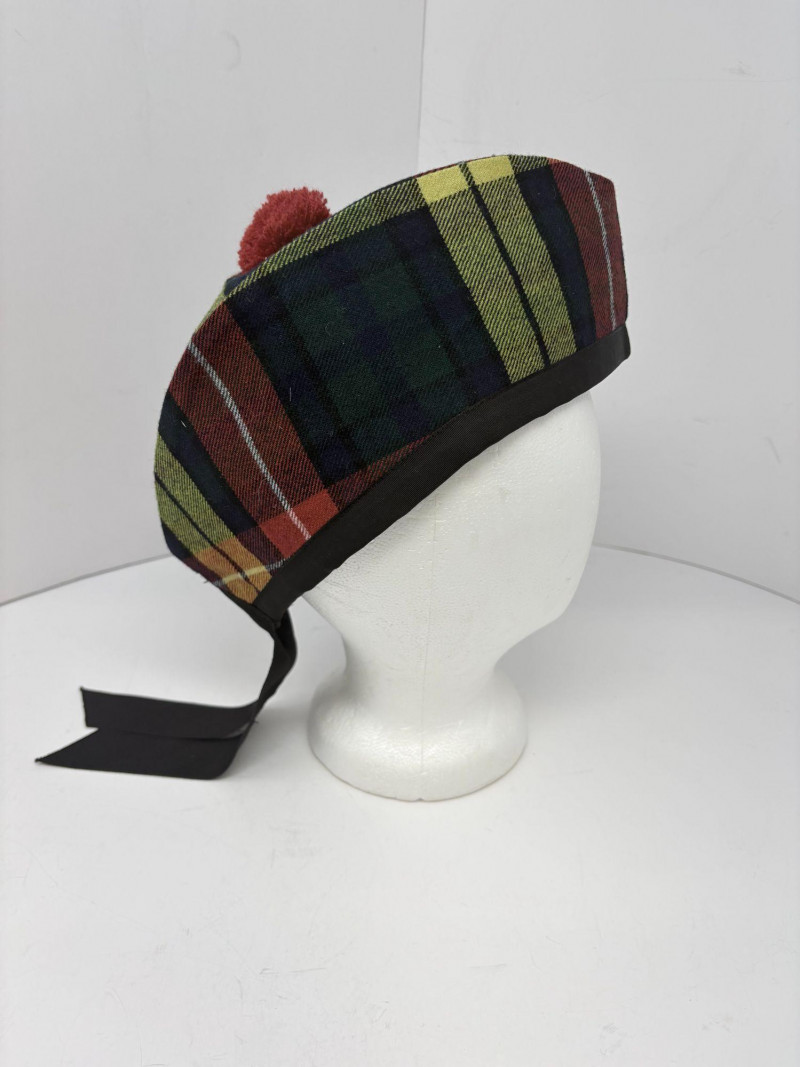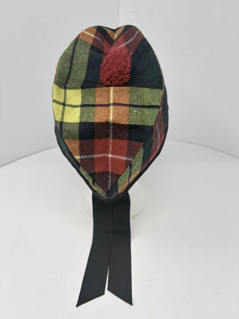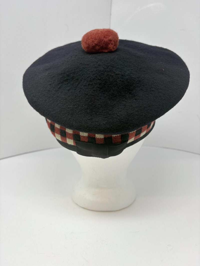 Approx. size: 8–9 in. tall × 6 in. wide. Tartan Balmoral Bonnet (Red Toorie)