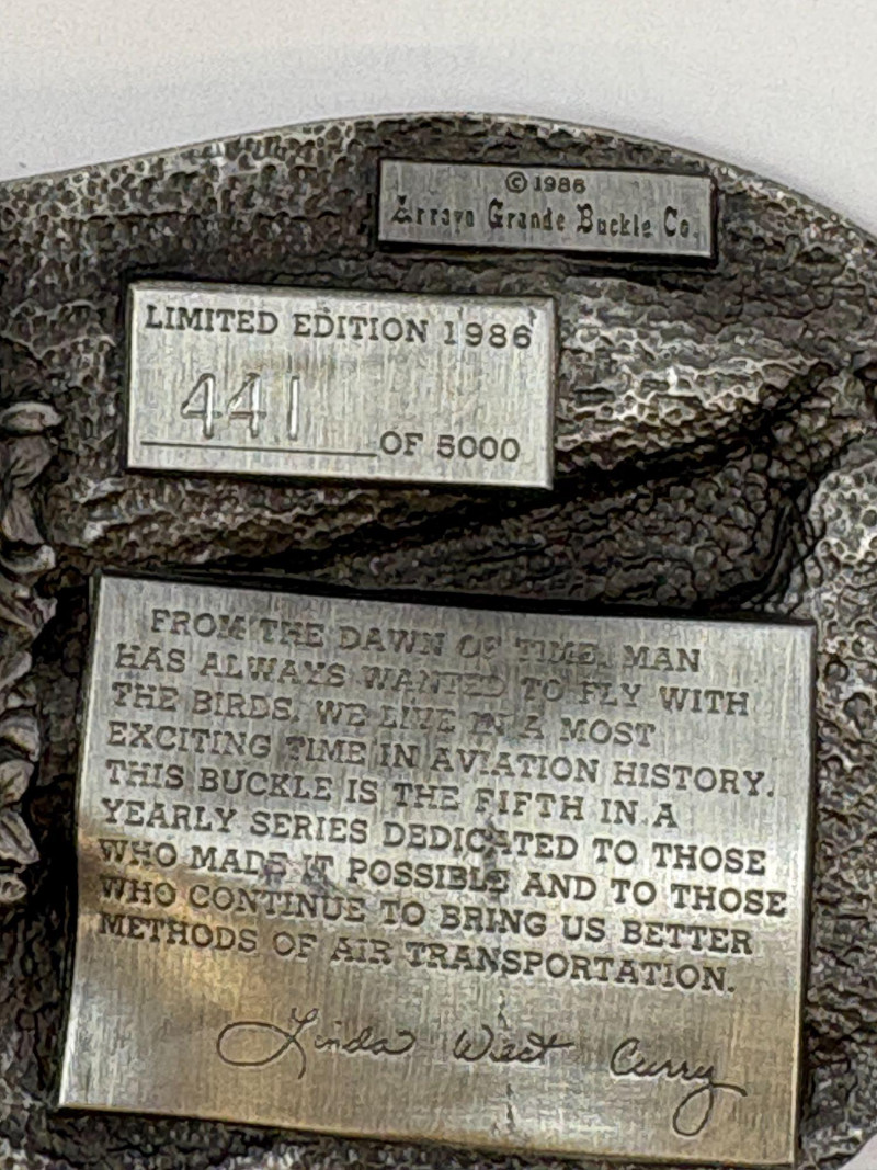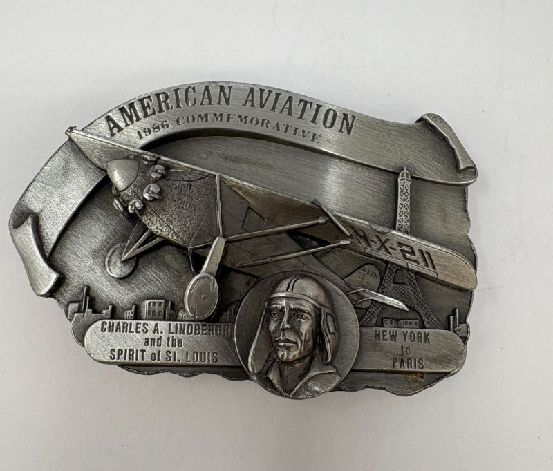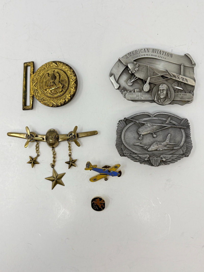 Lot # 140 - Six‑Piece Aviation Collection — Three Belt Buckles & Three Pins