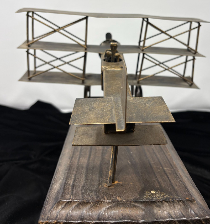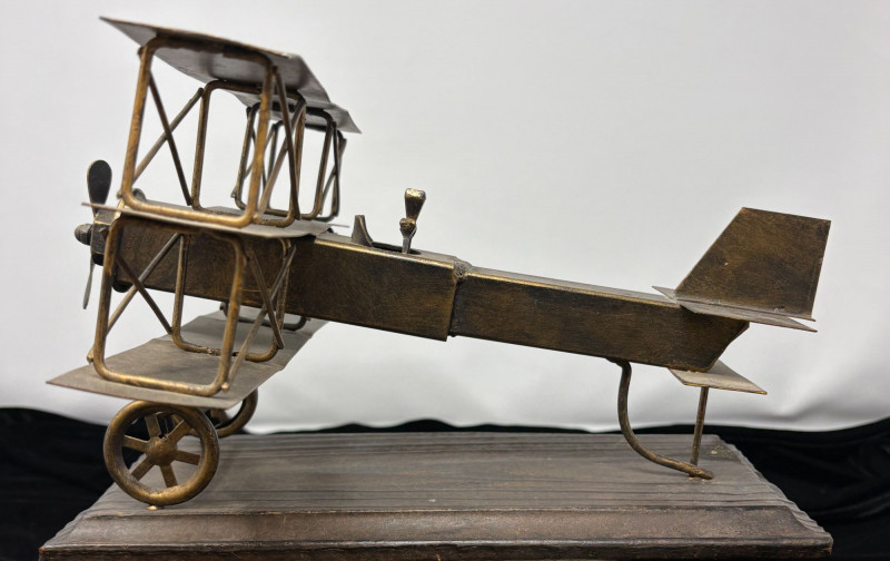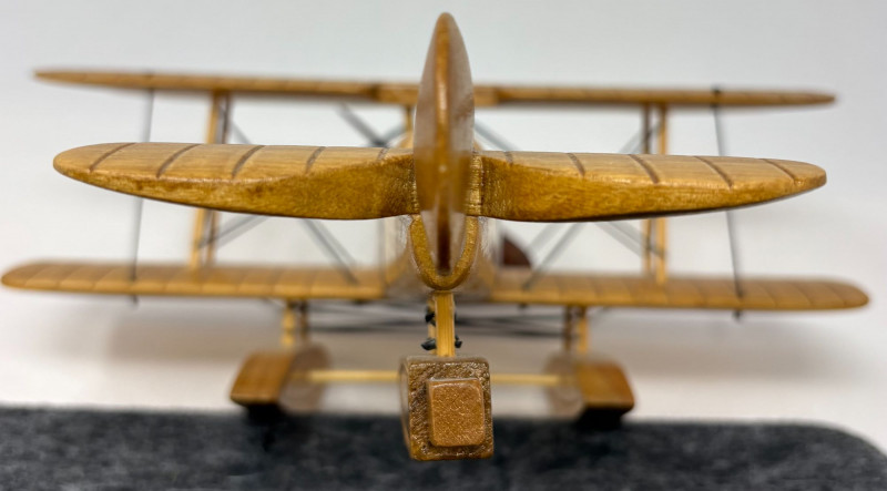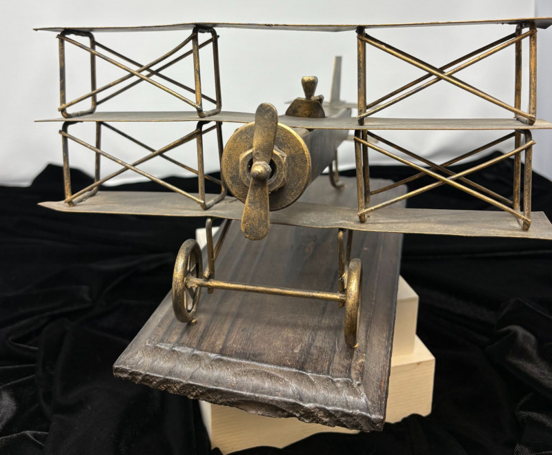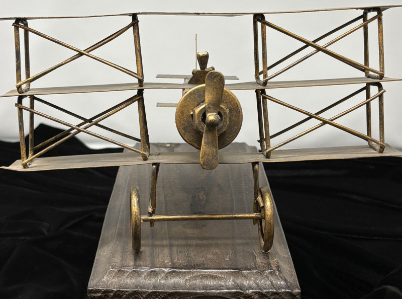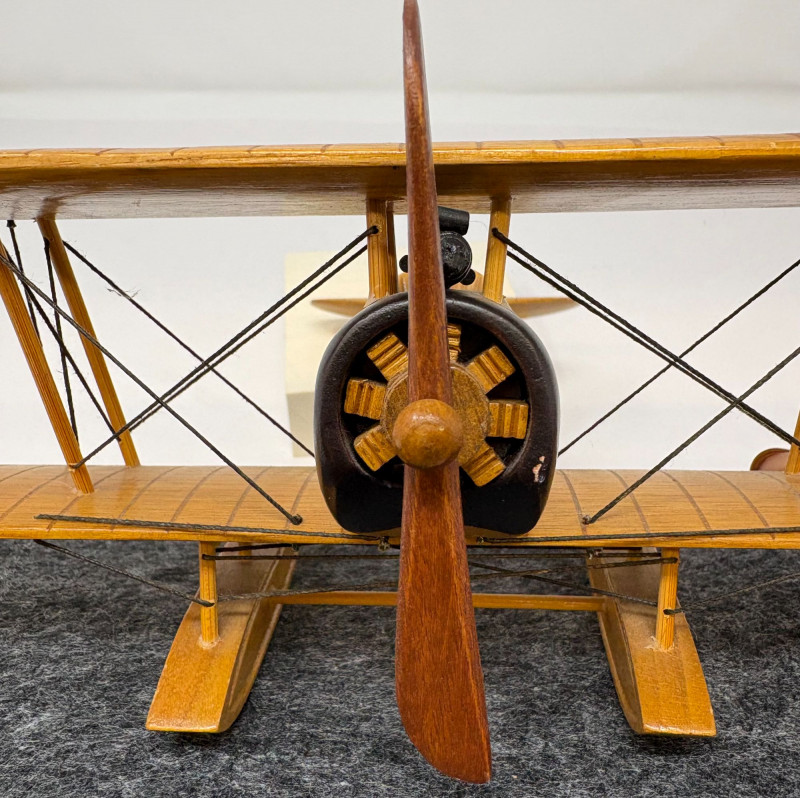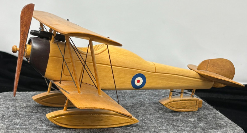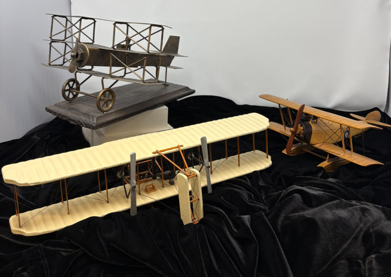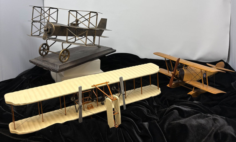 A trio of early‑aviation style model planes, each offering its own sculptural charm and handcrafted character. The grouping includes two classic biplane models and one wooden floatplane, creating a visually balanced set ideal for collectors, décor staging, or aviation enthusiasts. Biplane Model 1: approx. 9"–10" wide × 5"–6" deep × 3"–4" high Biplane Model 2: approx. 8"–9" wide × 5" deep × 3"–4" high Wooden Floatplane: approx. 8"–10" wide × 6" deep × 3" highApproximate Sizes