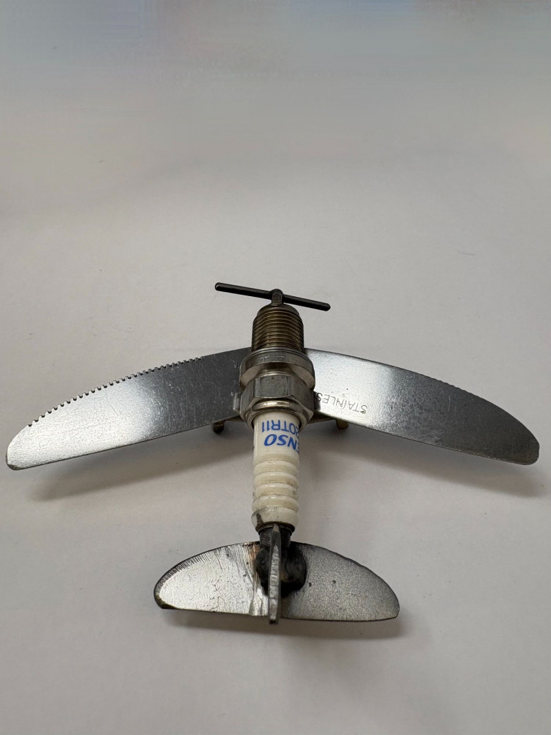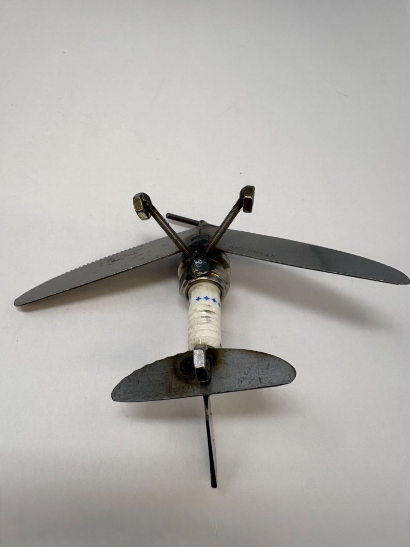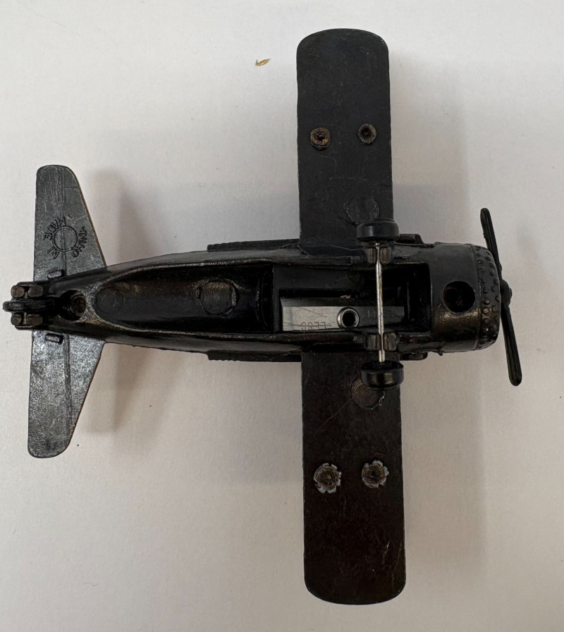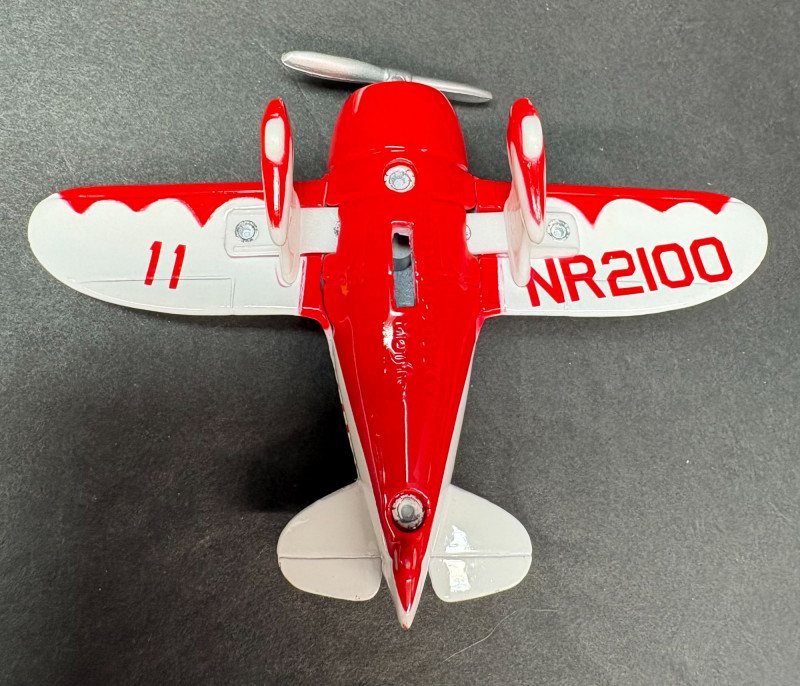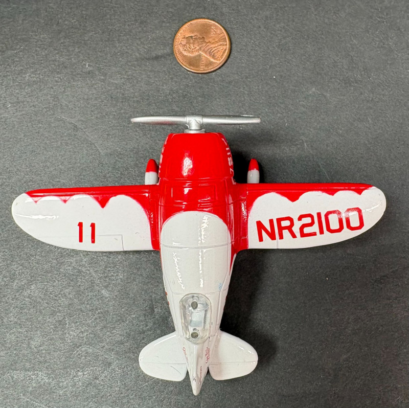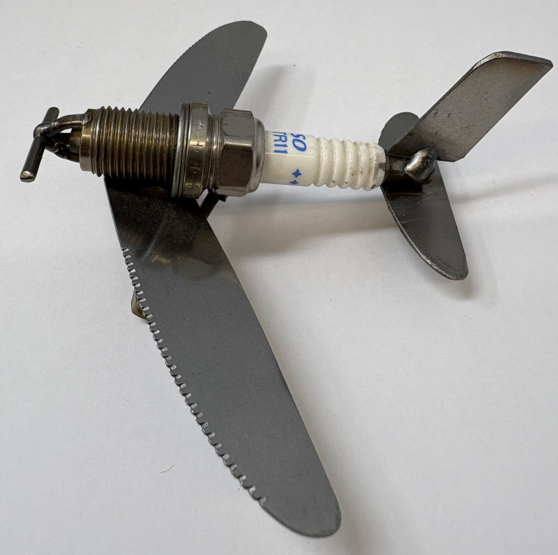 A four‑piece assortment of miniature airplanes, all crafted iwith varied finishes and details. One features a built‑in clock (untested), and another includes a white insulator marked “W.T.E.”, adding a touch of industrial charm. The red-and-white aircraft is glossy painted Polymer, offering a bright contrast to the silver and bronze tones of the others. Metal Airplane with Clock: 3½" L × 3½" W Metal Airplane with White Insulator (“W.T.E.”): 3½" L × 3½" W Small Metal Airplane: 3" L × 3" W Red Glossy Polymer Airplane: 3½" L × 3½" W A compact, character-rich grouping ideal for aviation collectors, desk décor, or a small curated display.Approximate Measurements