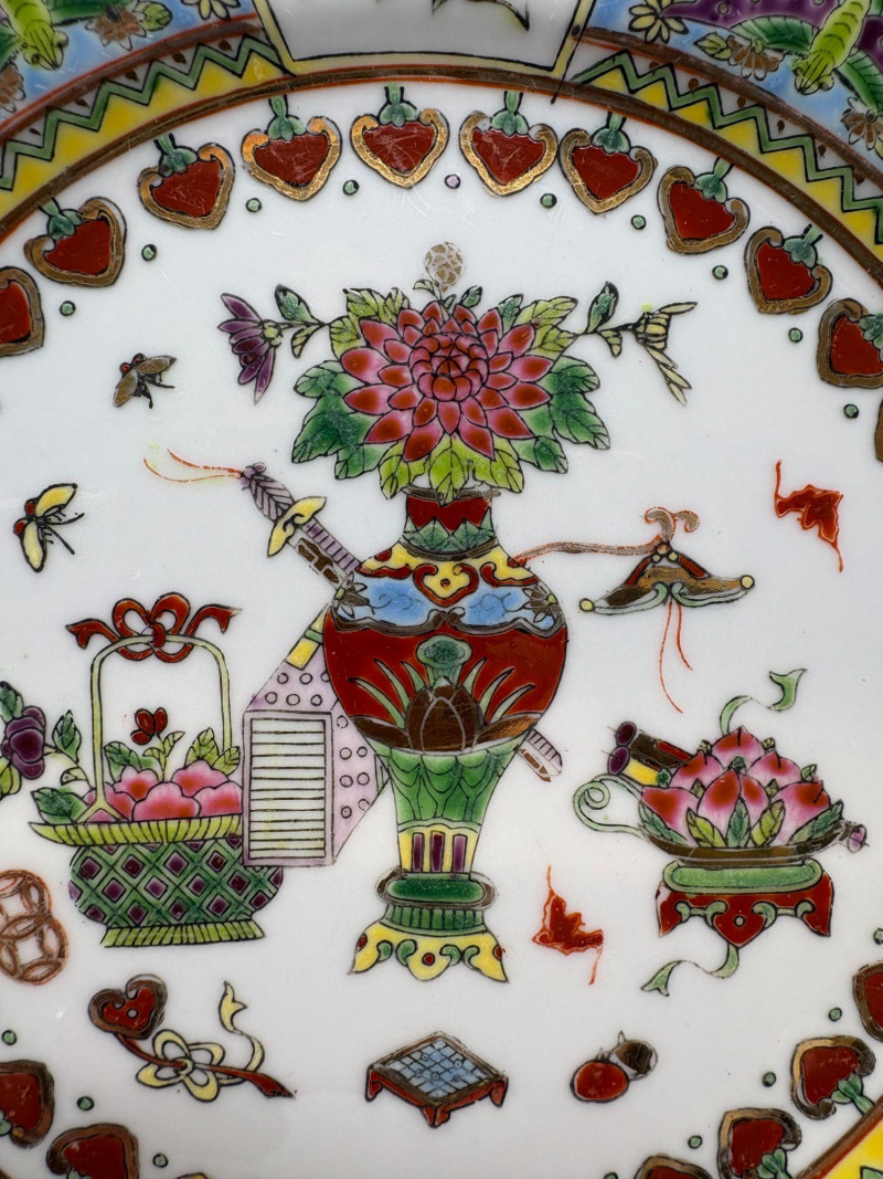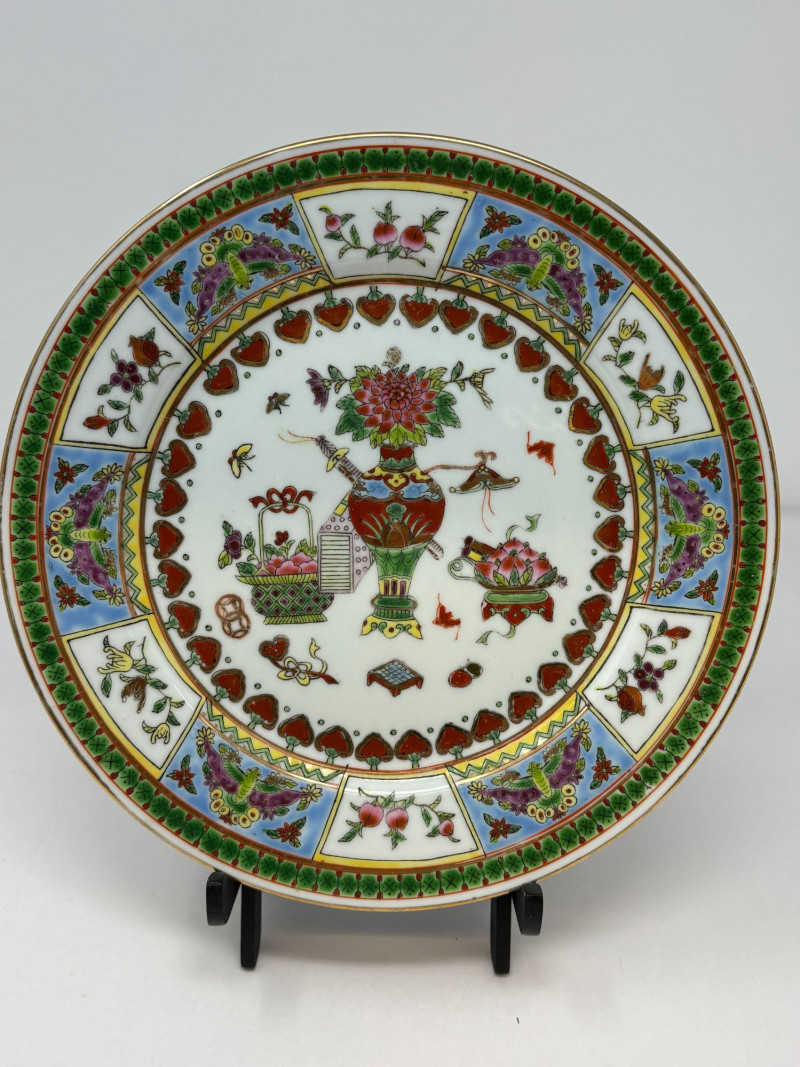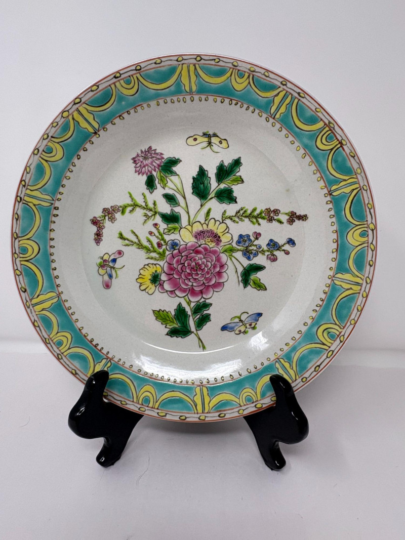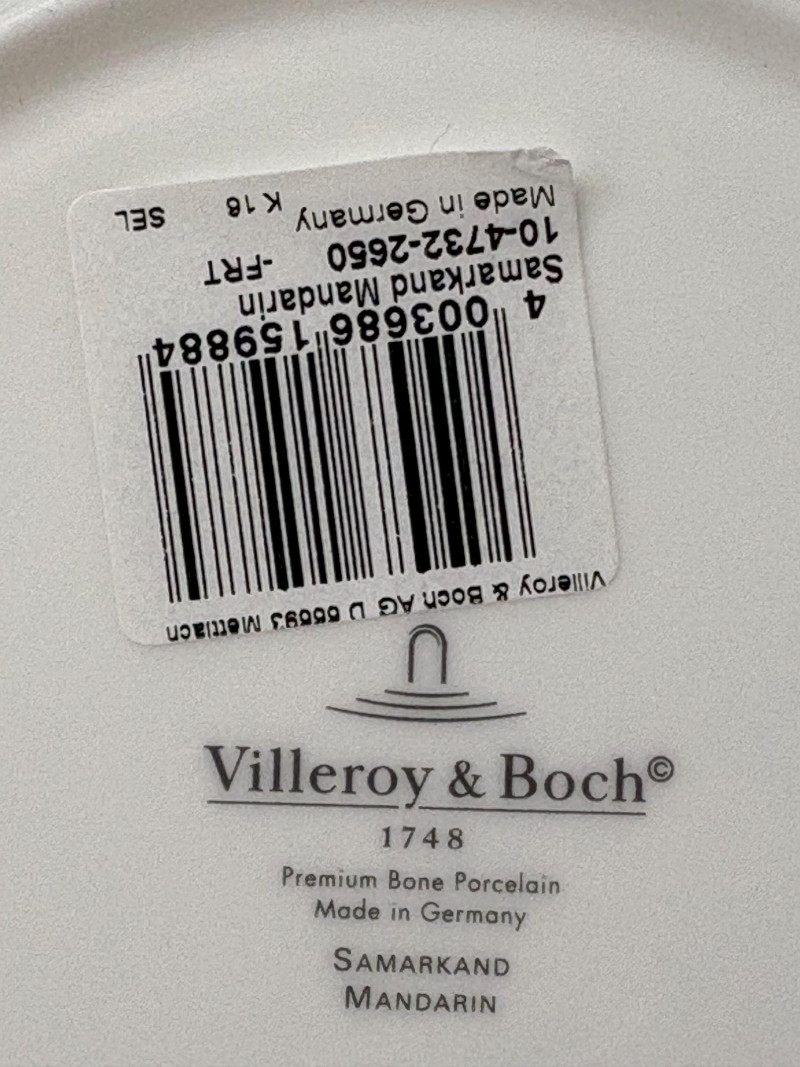 An eight‑piece assortment anchored by five Villeroy & Boch Samarkand Mandarin camel‑motif pieces, celebrated for their jeweled borders, warm mandarin palette, and distinctive caravan imagery. Paired with three floral and botanical plates, this grouping blends global elegance with decorative charm. 2 dinner plates 2 dessert plates 1 mug Globe Thistle / Echinops ritro botanical plate Floral famille‑rose style plate Additional floral decorative plateIncludes — 5 Villeroy & Boch Samarkand Mandarin Camel Pieces: