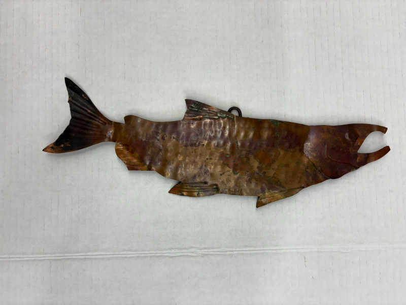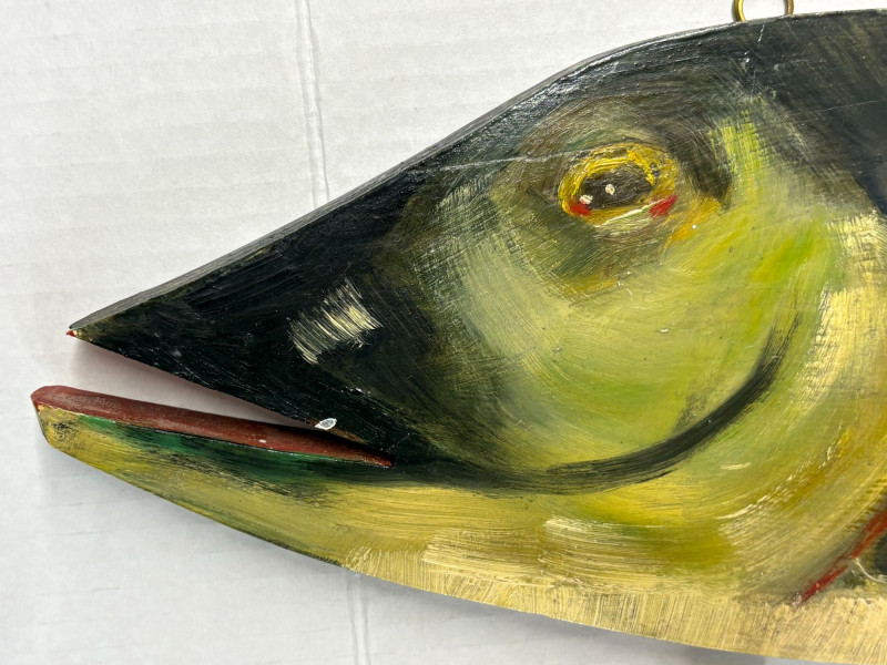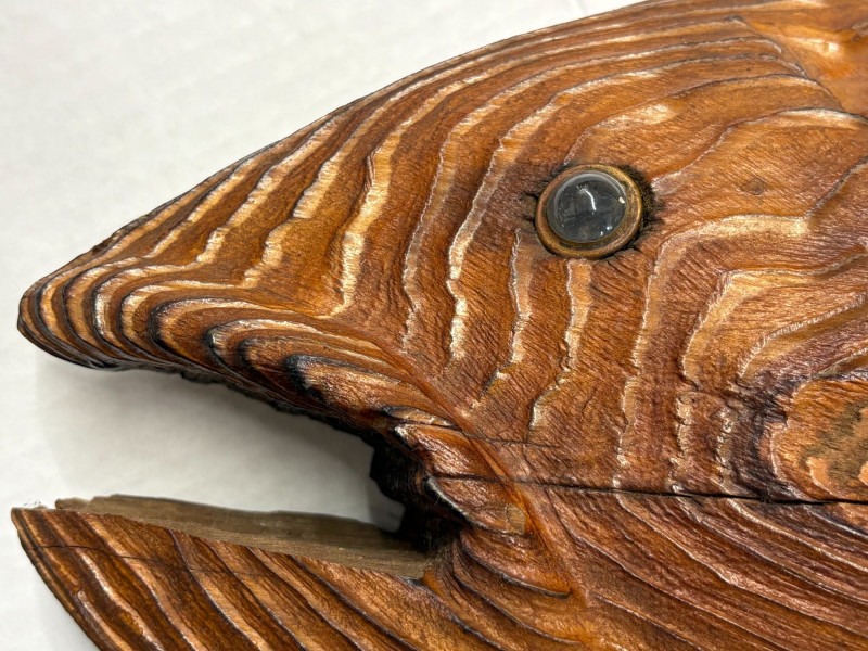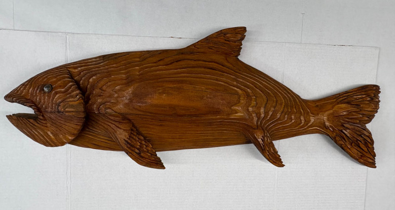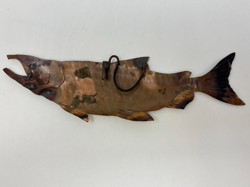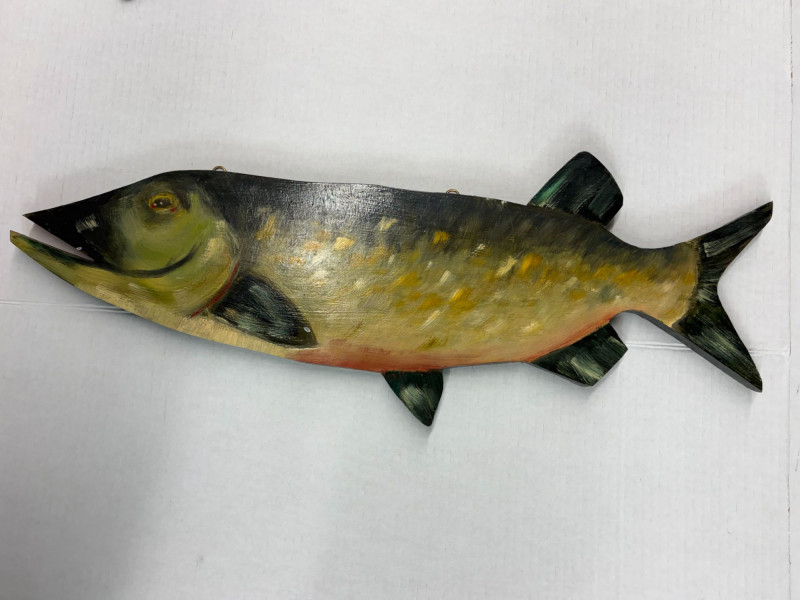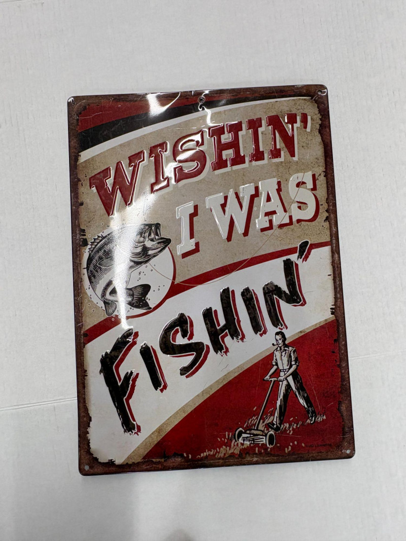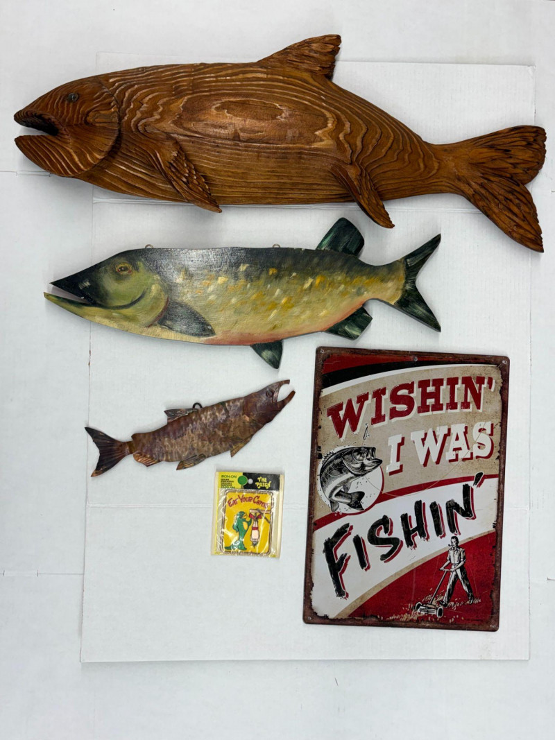A five‑item fishing collection blending handcrafted materials and classic angler charm. Includes: Copper Fish Sculpture — approx. 16½" L × 4" W. Large Carved Wood Fish — approx. 33" L × 12" H × 3" D. Painted Carved Fish — approx. 5½" L × 1" D. Enamel‑Style Fishing Sign — approx. 16½" L × 12" H. Fishing Patch — humorous clothing patch for jackets or gear. A clean, rustic mix ideal for cabin décor, collectors, or fishing enthusiasts.