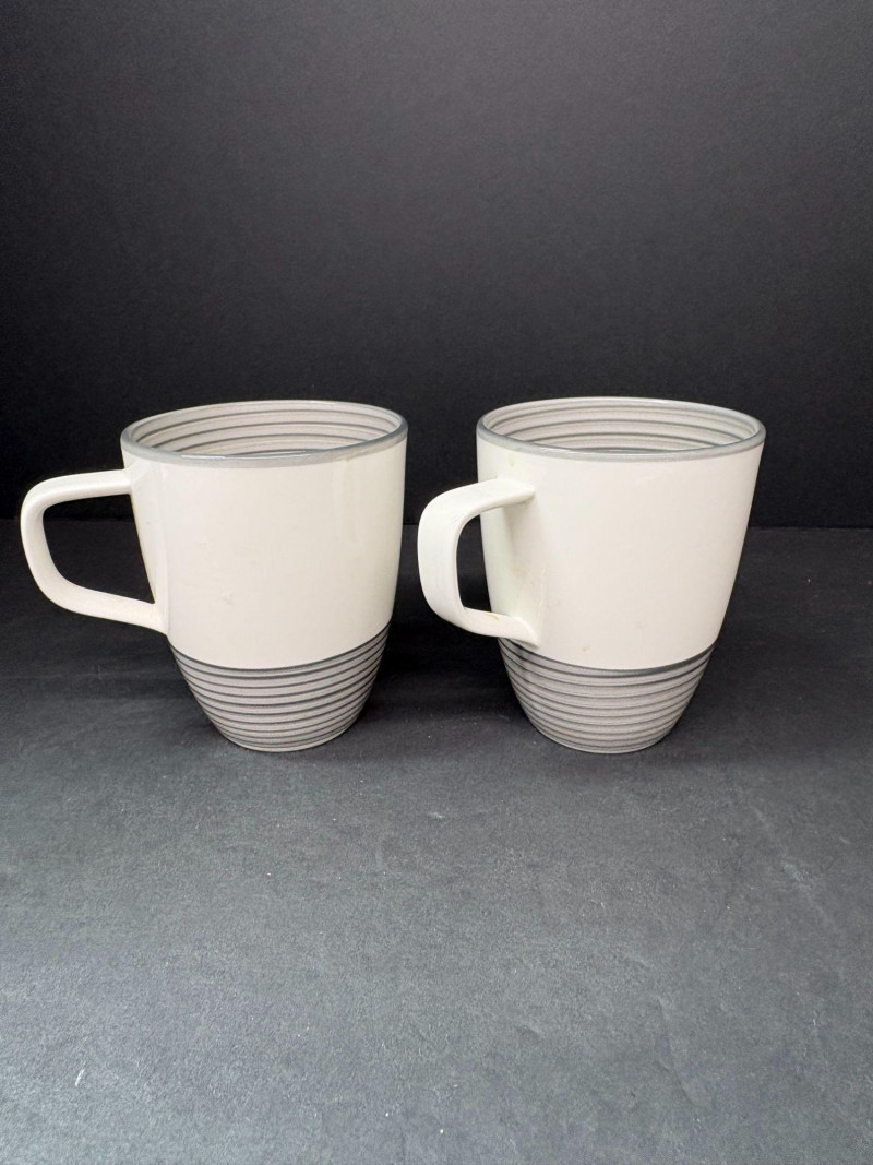 • Coffee mugs, qty 2 A graceful mix of French porcelain, American ceramic, and German stoneware—ideal for collectors or anyone building an eclectic, elevated table.