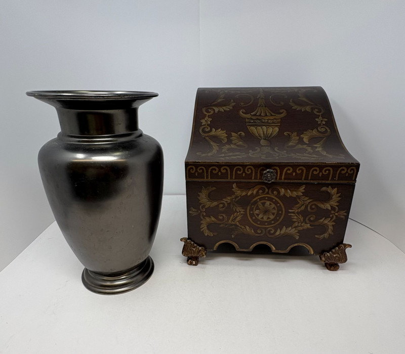 Lot # 177 - Restoration Hardware Urn & Ornate Storage Box – 2‑Piece Decorative Set