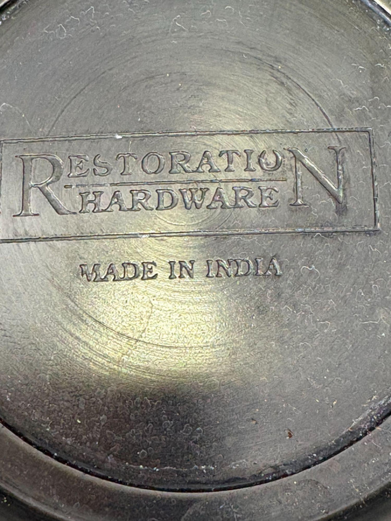 Restoration Hardware décor, blending sculptural presence with old‑world detailing.