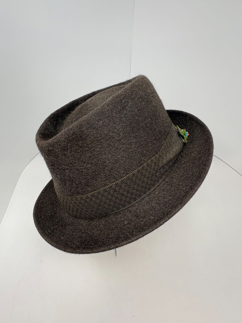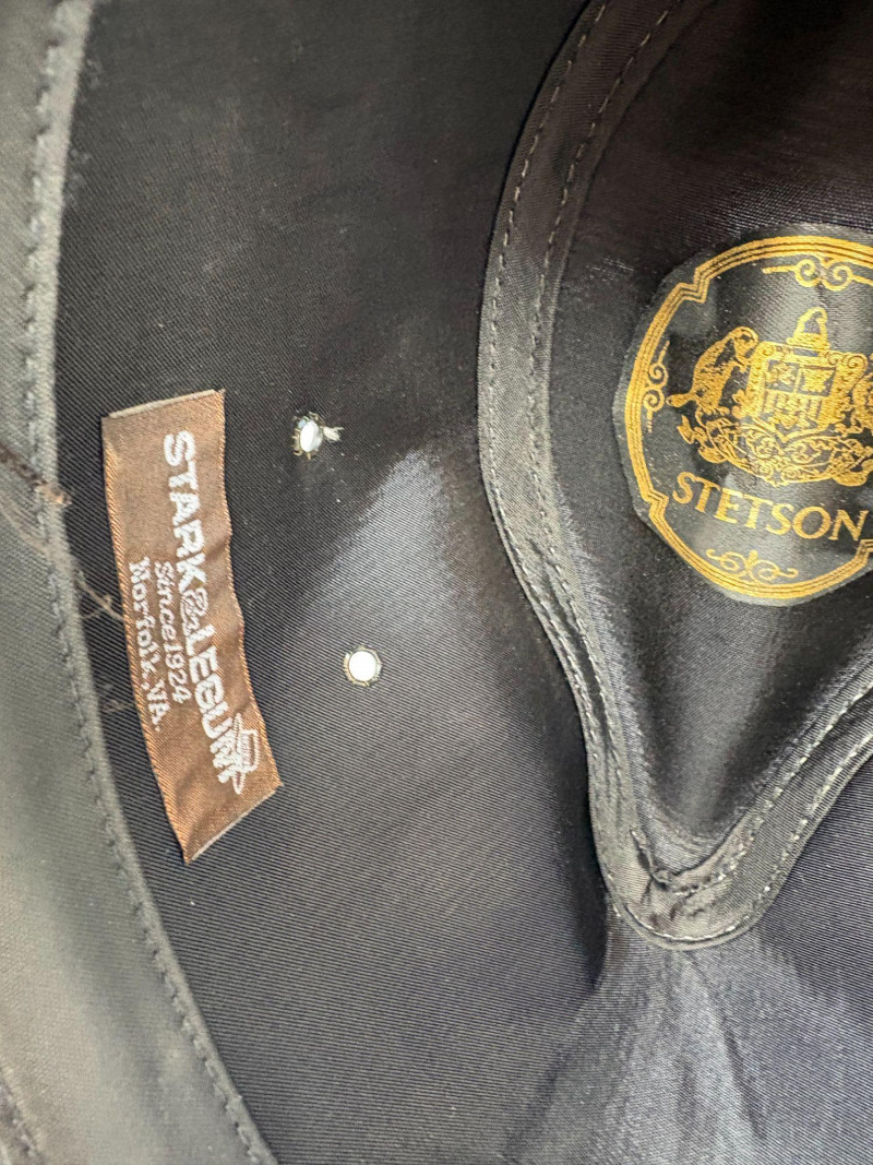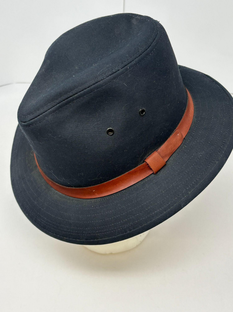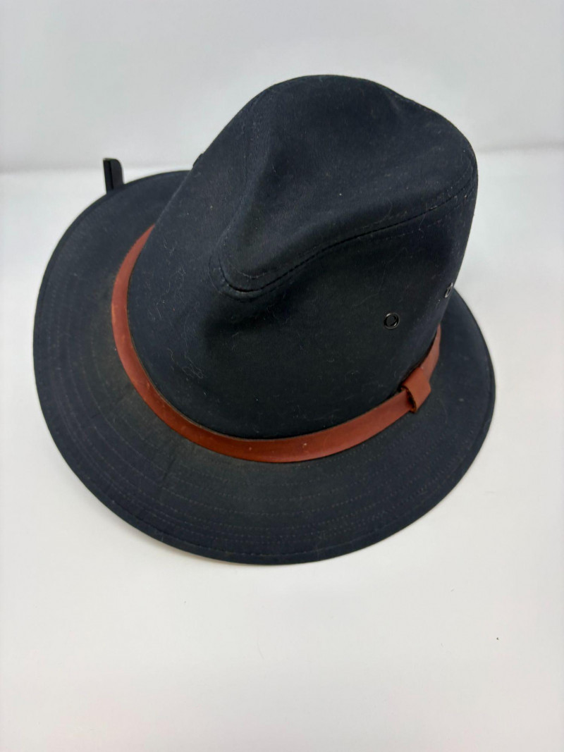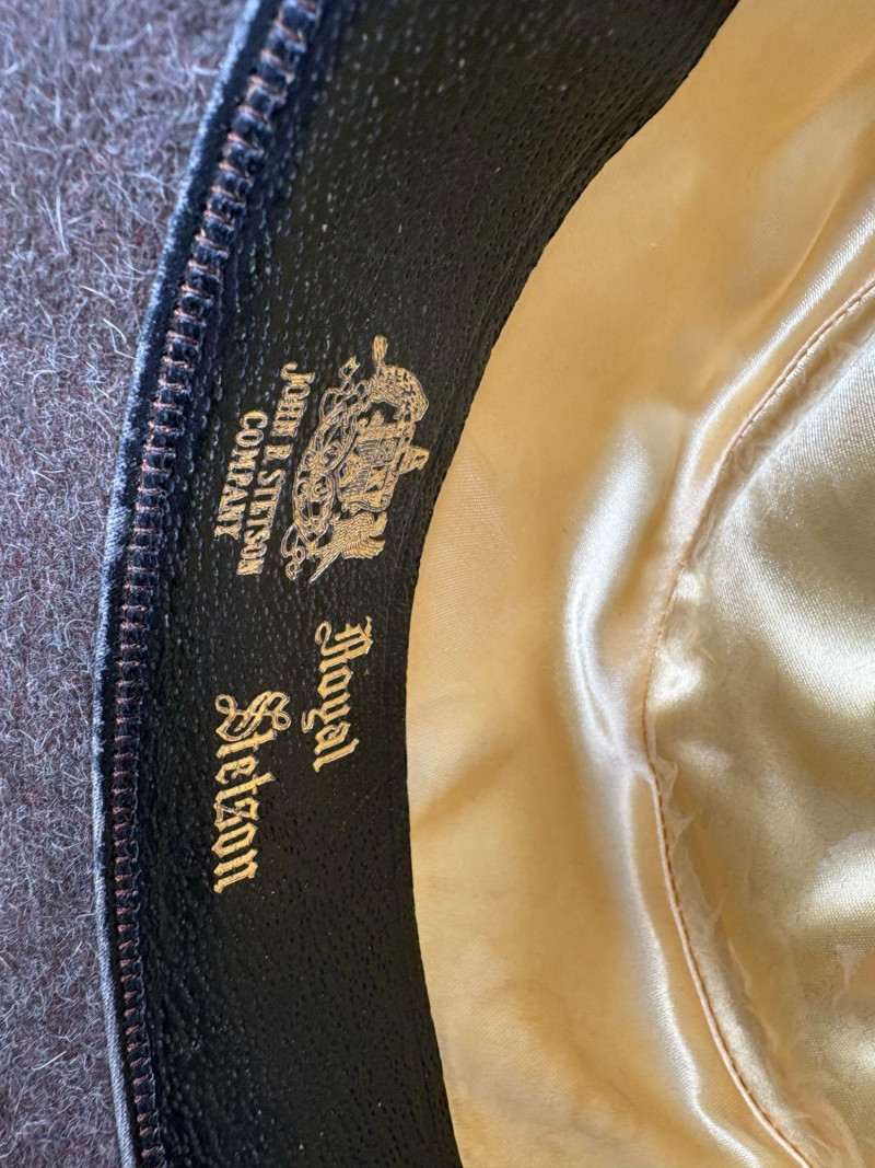 A handsome duo of authentic Stetson hats, each showcasing the brand’s classic American craftsmanship. Brown Felt Royal Stetson Fedora —Size large. The hat is in excellent condition. No signs of wear. The inside sweat band is in perfect condition, as is the satin lining. The felt is a 'fur felt' with visible hairs stamped into the finish. The ribbon hat band is also in excellent condition. Warm brown felt with a traditional brim, tonal hatband, and decorative accent. Interior features the signature satin lining and gold Royal Stetson crest, consistent with mid‑century production. A refined, collectible piece with rich color and character. Black Stetson Fedora —Size medium. Deep black paired with a contrasting brown band for a sharp, versatile profile. Interior is marked with the “STETSON — Made in U.S.A.” label, confirming authentic domestic manufacture. Naturally water‑resistant due to the wax/oil finish. Waxed cotton/oil finished cotton. Both hats present well and offer the quality, structure, and heritage styling that define Stetson’s long‑standing reputation.