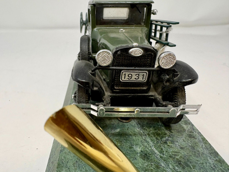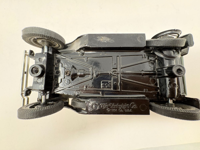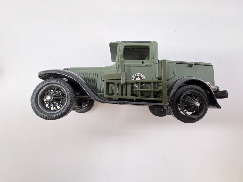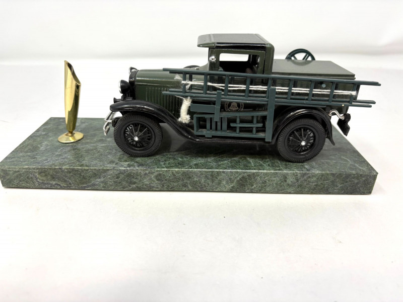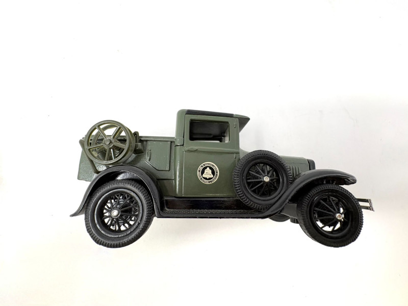 A pair of vintage Bell System service trucks, each with classic utility‑vehicle styling and period telecommunications branding. Both models display well with their original details, making them ideal for collectors of Bell System, AT&T history, or early utility‑vehicle replicas. A heavy cast‑metal model marked “The Hubley Co. – Made in U.S.A.”, featuring: Three removable Bell System cable spools Side‑mounted Bell System tool box Embossed Bell System medallion on the cab Mounted on a green display base Approx. Size: Truck: ~ 7½" L × 3" W × 3½" H (based on typical Hubley scale and proportions shown) Base: ~ 8" L × 3½" W A smaller Bell System service truck model with matching period styling, painted details, and utility‑bed form. Shows light display wear consistent with age. Approx. Size: Truck: ~ 4½" L × 2" W × 2½" H1. Hubley Bell System Railway Truck (1989 Yorkshire Co.)