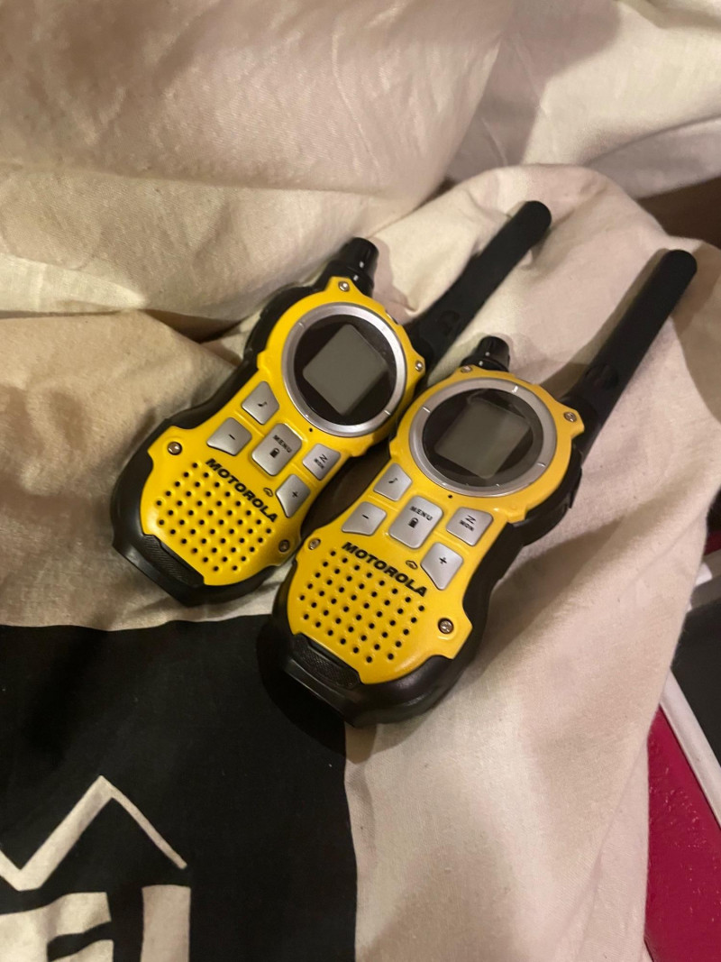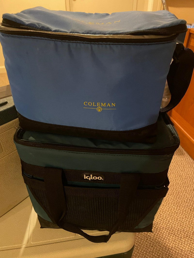 Includes storage bag 2 Motorola Walkie‑Talkies – Untested 2 Rain/Sun Hats Multiple Coolers in varying sizes