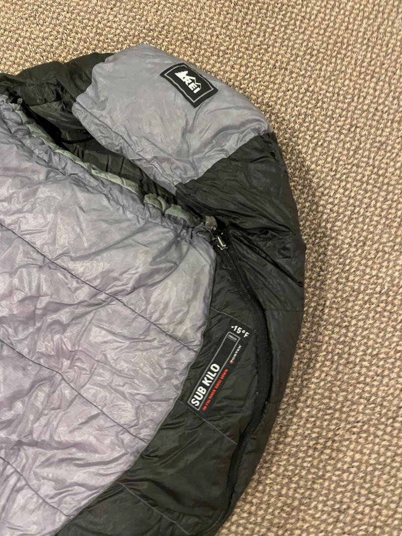 Comes with its storage bag REI Sub Kilo Sleeping Bag – Black/Silver