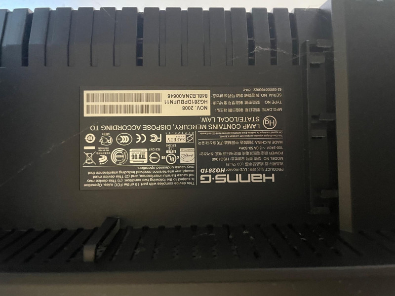 Source: Sound Estate Company listing A large‑format 28-inch Hanns‑G HG281D monitor, great for expanding a workspace, upgrading a home office, or adding a big display for streaming, browsing, or general computing. Its generous size makes it especially useful for multitasking or anyone who prefers a larger screen footprint. Brand: Hanns‑G Model: HG281D (listed as “Model 281D”) Screen Size: 28" Ideal for office use, secondary display setups, or general home computing This is a used monitor; expect normal wear consistent with pre‑owned electronics Working condition is not guaranteed Sold AS IS WHERE IS Dimensions may be approximate Model 281D, 28" Hanns‑G Monitor – Model HG281D