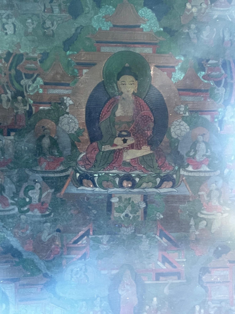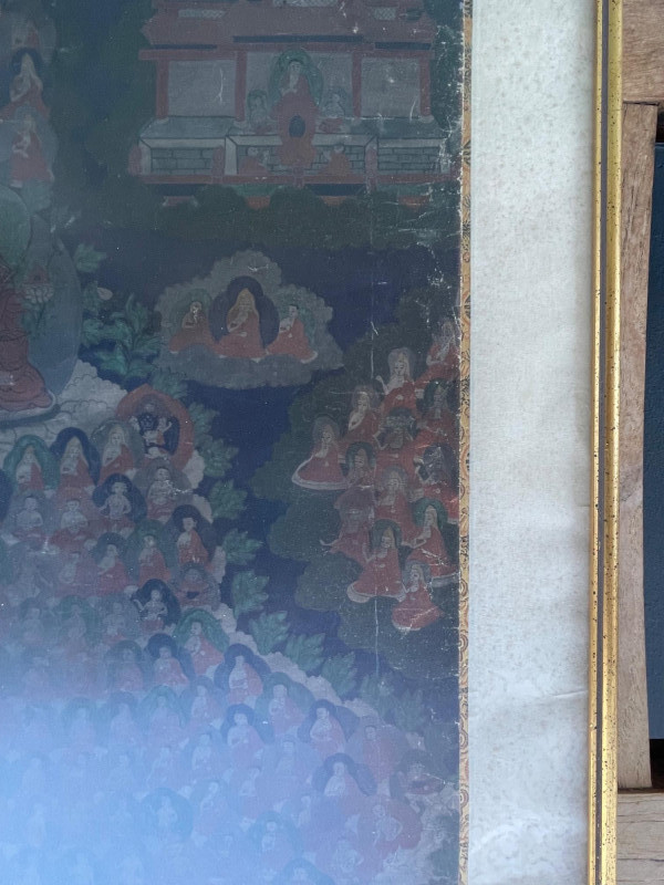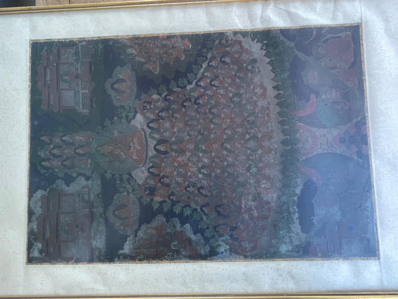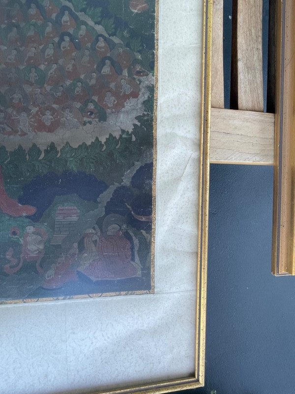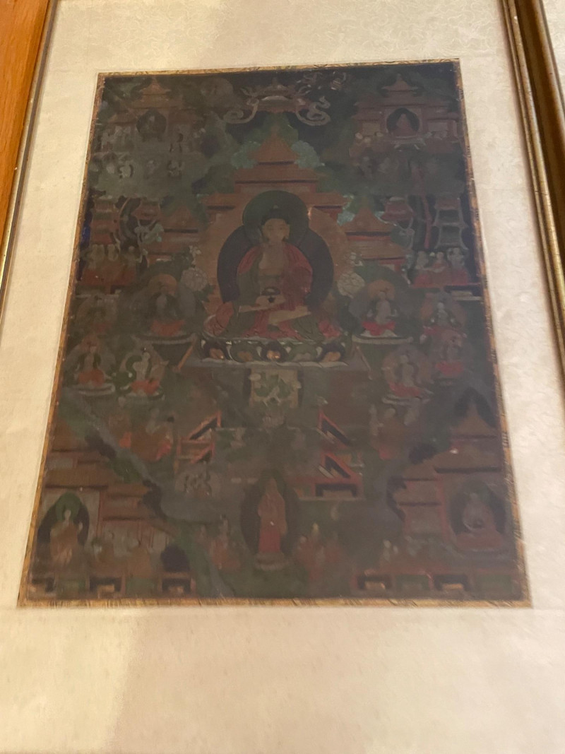 A serene pair of Buddhist‑style framed prints, ideal for creating a calming focal point in a meditation space, hallway, bedroom, or curated gallery wall. The two pieces complement one another beautifully—one larger, one smaller—offering balance and visual harmony. Set of two framed prints in a Buddhist‑inspired style Large print: approx. 32 1/2" x 21" Small print: approx. 27 1/2" x 18" Peaceful imagery suited for contemplative or minimalist décor Ready to hang The listing notes that all items show normal wear consistent with vintage or used artwork and are sold AS IS WHERE IS, with no guarantees on condition or completenessHighlights