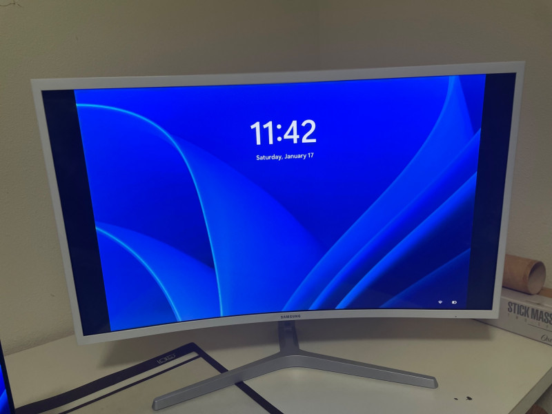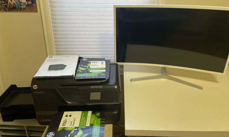 Great for everyday office tasks. Items are used; expect normal wear consistent with pre‑owned electronics Working condition is not guaranteed Sold AS IS WHERE IS Dimensions may be approximateSamsung 27" Curved Monitor & HP OfficeJet Pro Printer Combo